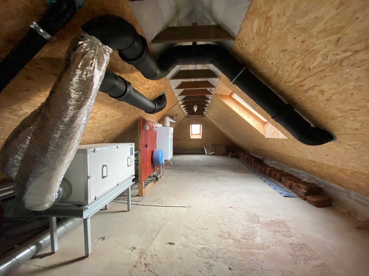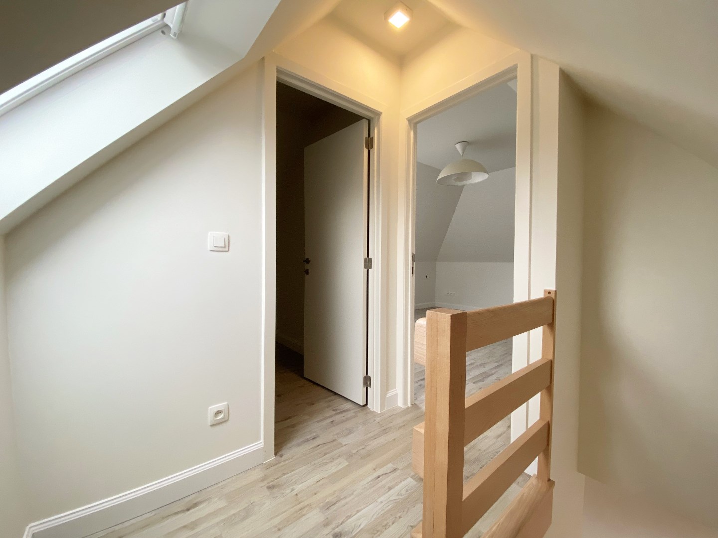Via een vaste trap komt U terecht op het eerste verdiep. Het verdiep is voorzien van een nachthal, 2 slaapkamers (waarbij 1 doorloopkamer naar de zolderruimte/technische ruimte), een badkamer met inloopdouche, ligbad, lavabomeubel met 2 lavabo's en een toilet. Via de tweede vaste trap komt U terecht op een tweede nachthal die toegang biedt aan een bergruimte en een derde slaapkamer.