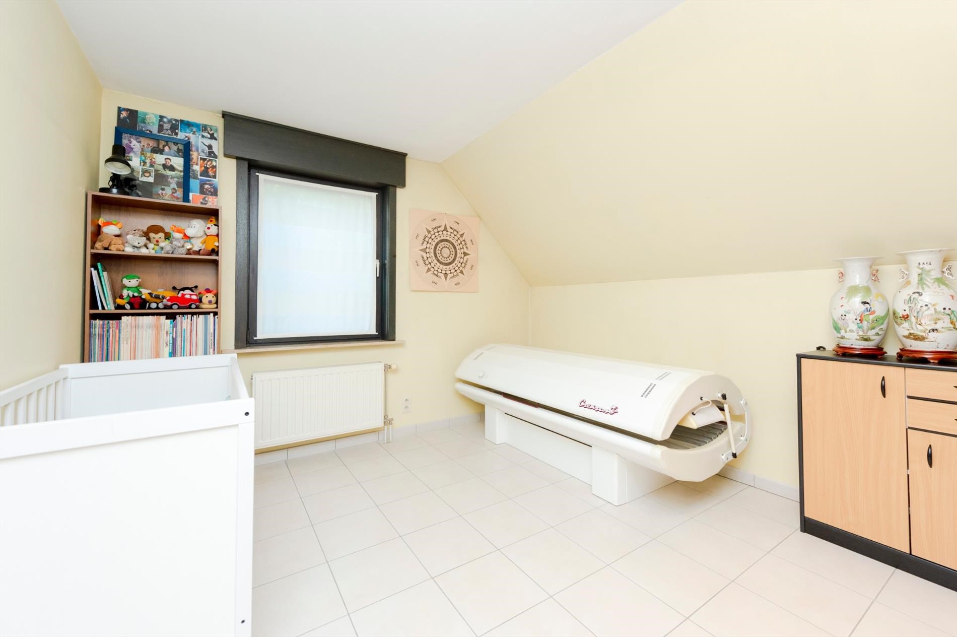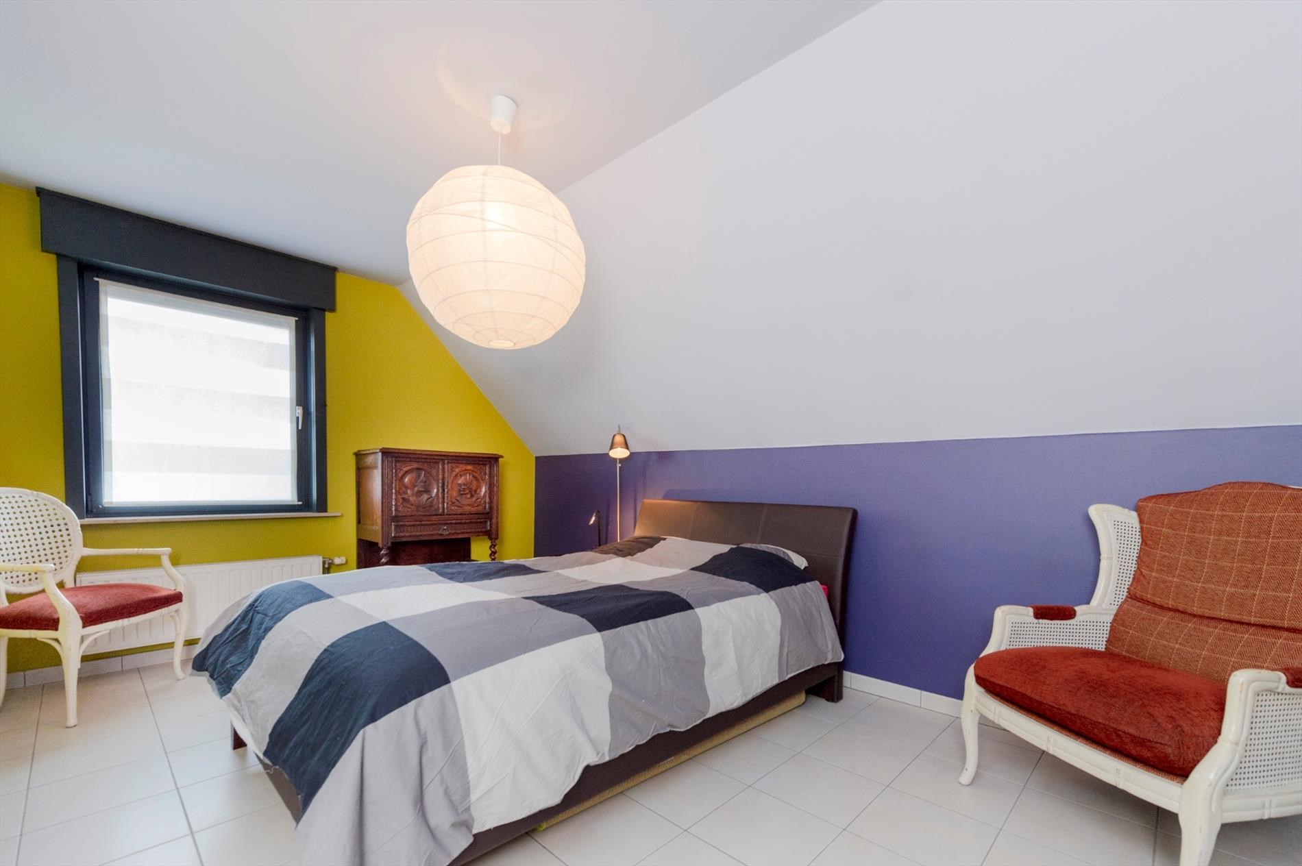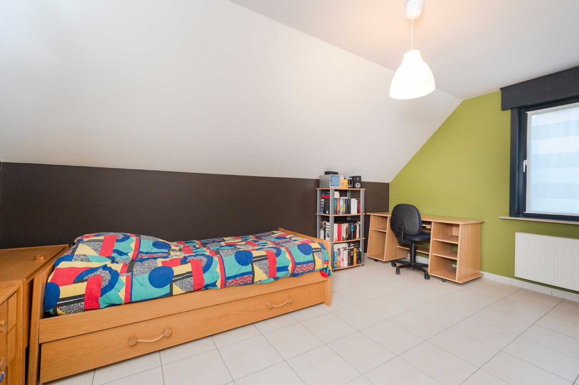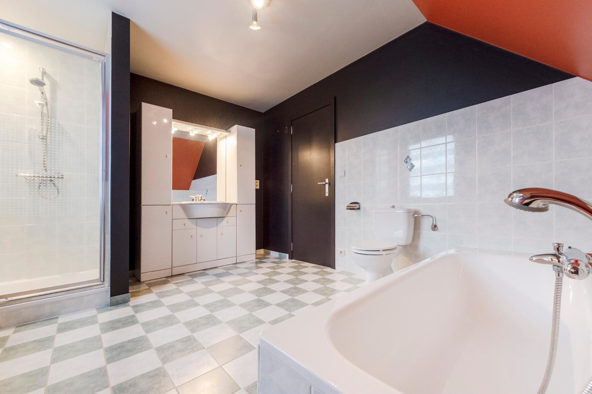 Op de eerste verdieping, komen we op een ruime overloop. Deze overloop biedt toegang tot de ingerichte badkamer (lavabo met meubel, douche, bad en hangtoilet) alsook 3 ruime slaapkamers van respectievelijk 14 m², 17 m² en 17 m².