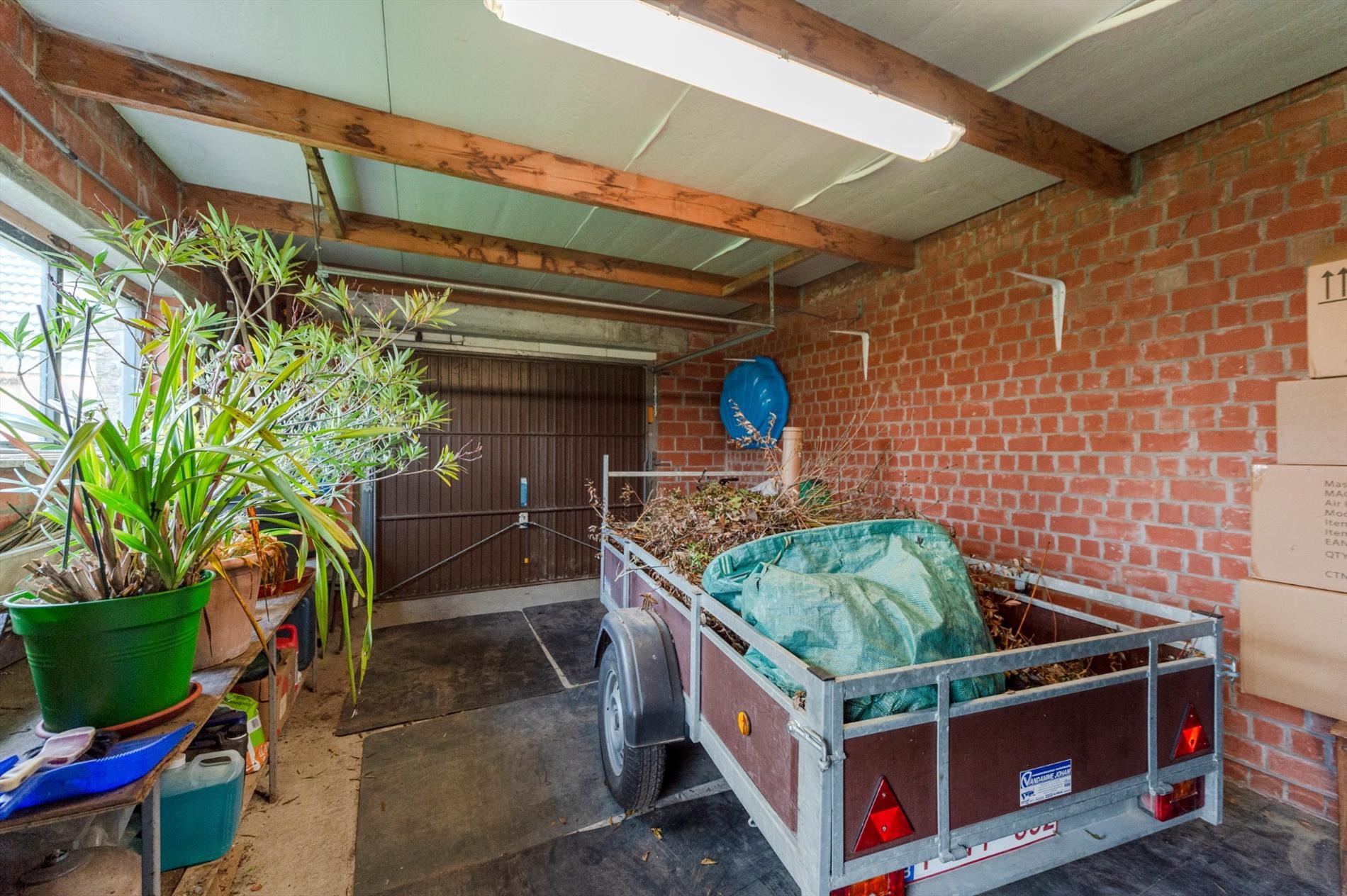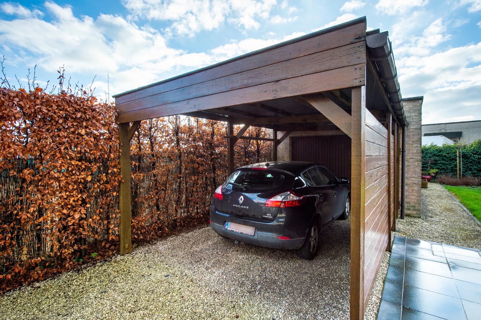 Ruime en onderhoudsvriendelijke tuin met bijgebouw. Dit bijgebouw kan dienen als tweede garage en is tevens voorzien van een carport alsook houtberging.