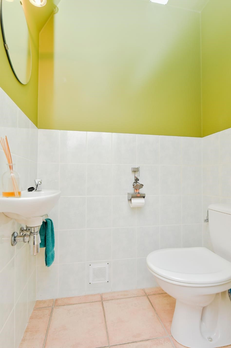 Aansluitend vinden we de geïnstalleerde keuken (voorzien van dampkap, kookplaat, oven, dubbele spoelbak, vaatwasmachine en koelkast). Vanuit de keuken is er directe toegang tot de tuin en het aangelegde ruime terras.
