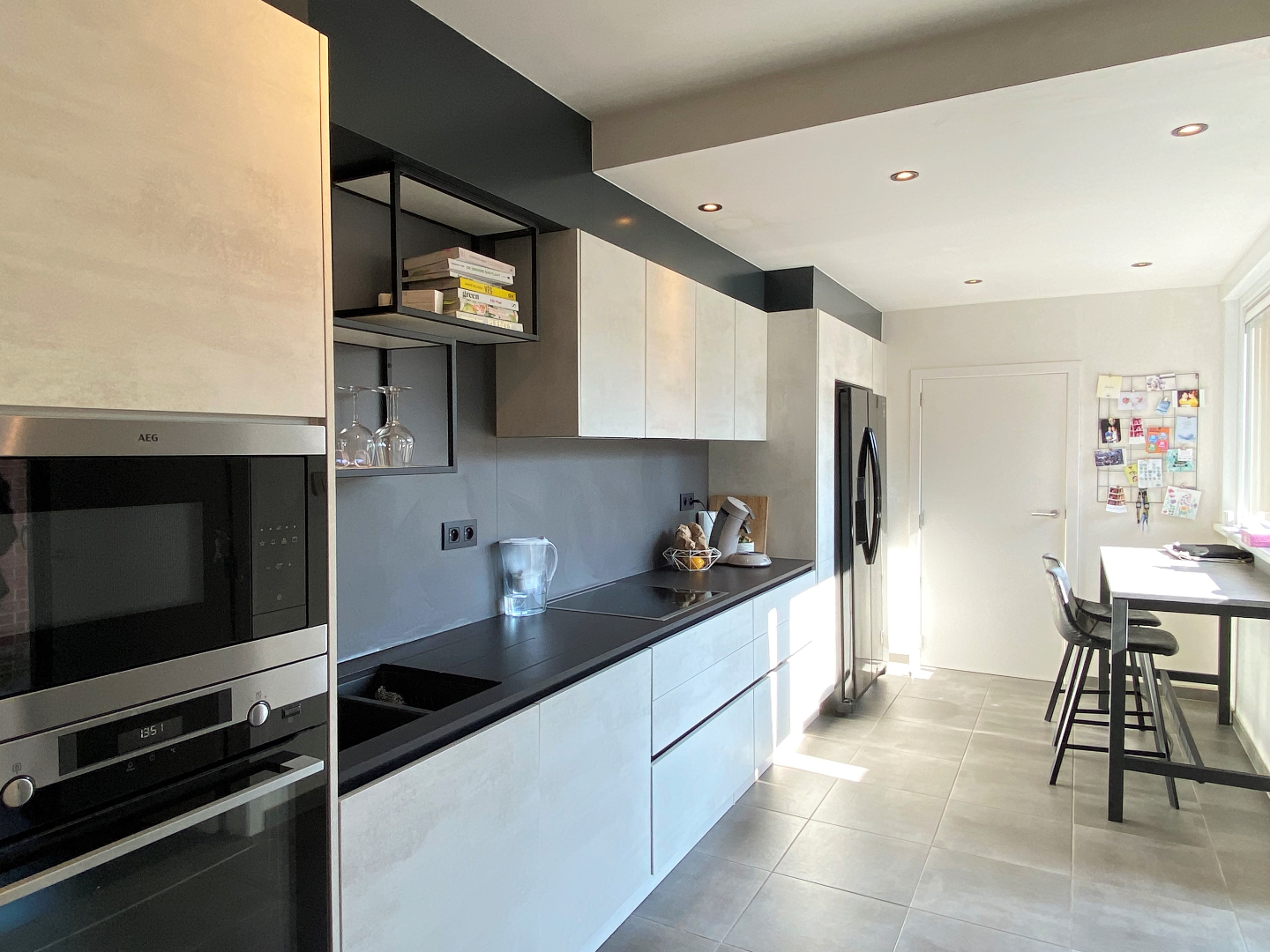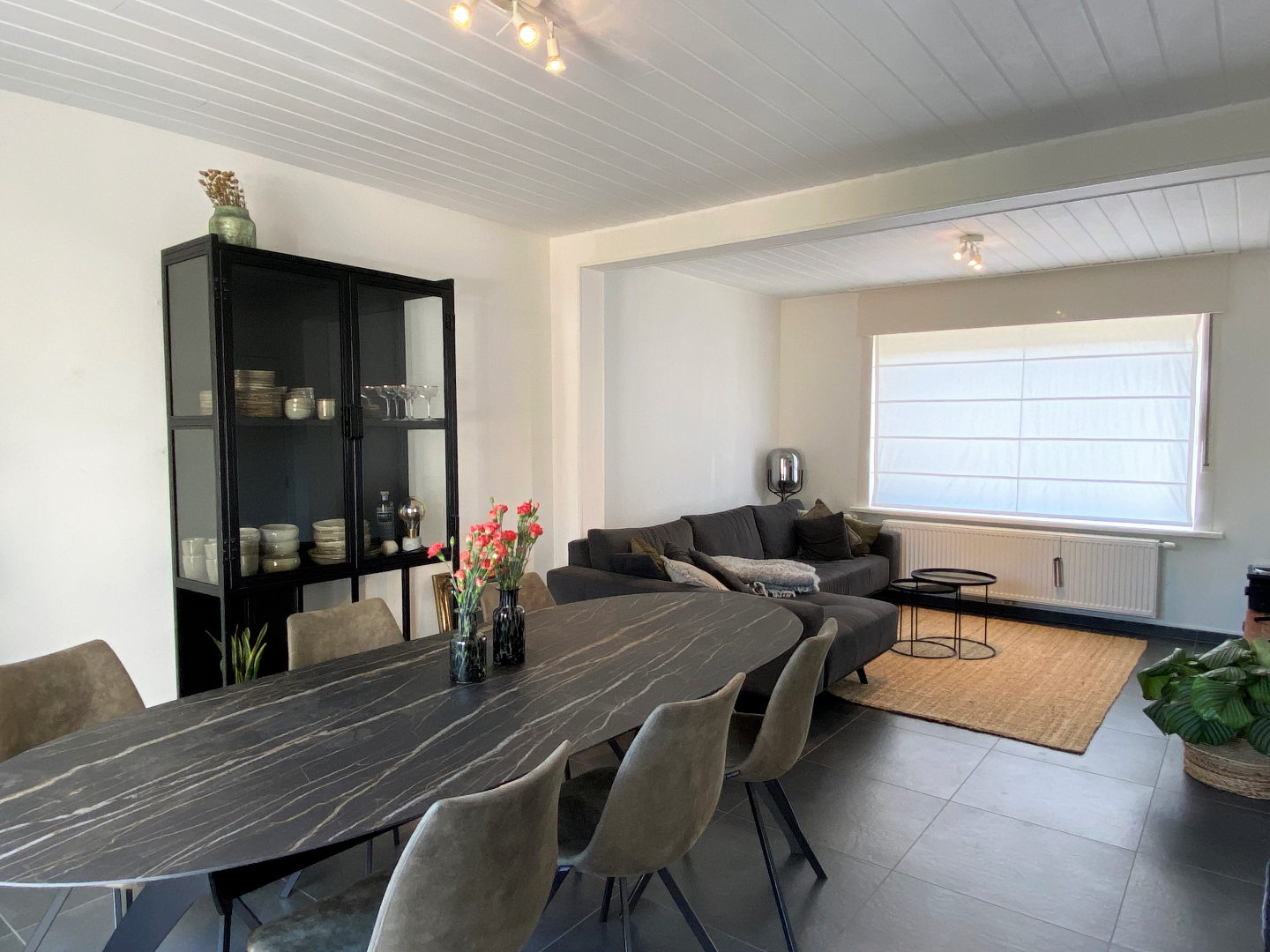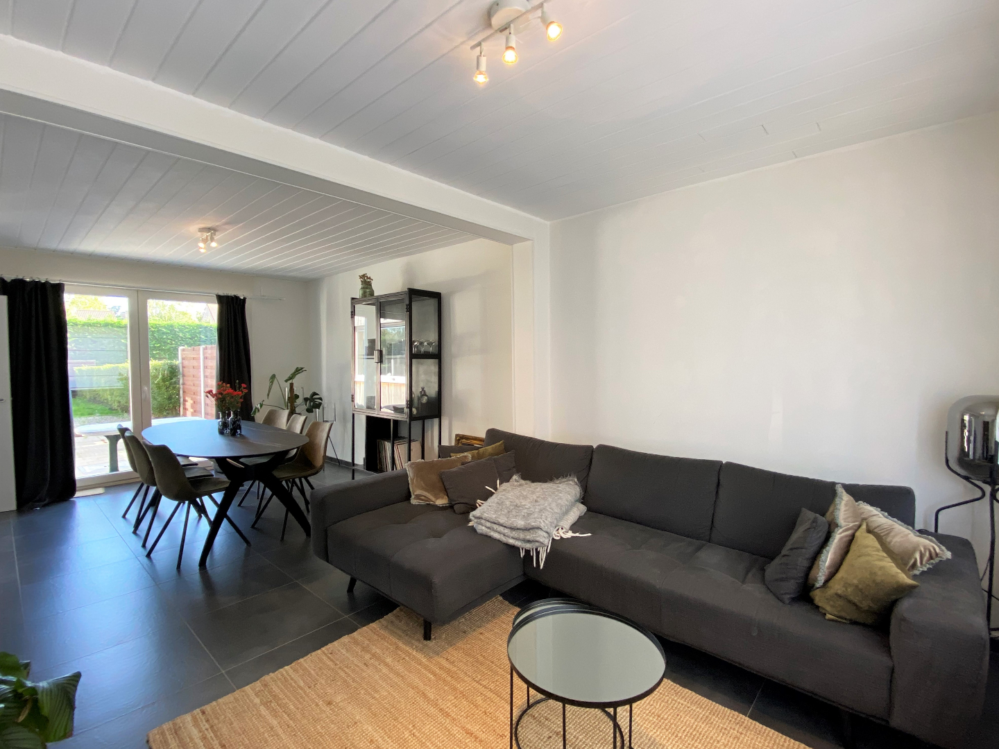 De woning omvat op het gelijkvloers een vernieuwde inkomhal met gastentoilet, een ruime leefruimte bestaande, volledig geschilderd, plaats voor een zithoek en een eethoek. Aansluitend is de gesloten keuken. De keuken werd VOLLEDIG vernieuwd. De keuken is voorzien van een koelkast, een microgolf, een oven, een spoelbak, een vaatwasser, een keramische kookplaat en een dampkap. Zowel via de keuken als via de leefruimte is er directe toegang tot de zongerichte, gezellige en kindvriendelijke tuin.