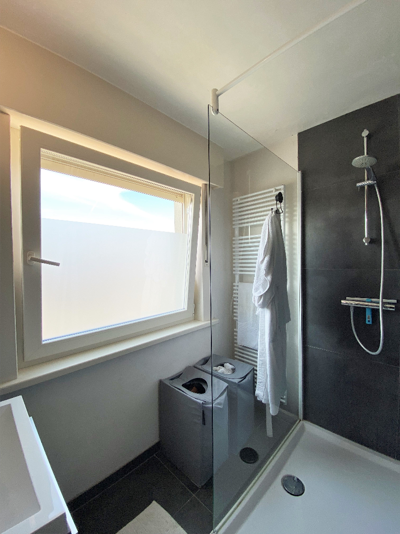 Via een vaste trap komt U terecht op het verdiep. Dit verdiep omvat een nachthall, drie slaapkamers en een volledig vernieuwde badkamer! De slaapkamers zijn geschilderd en voorzien van dubbel glas en laminaat (parket look). De badkamer omvat een lavabo met meubel en een inloopdouche.