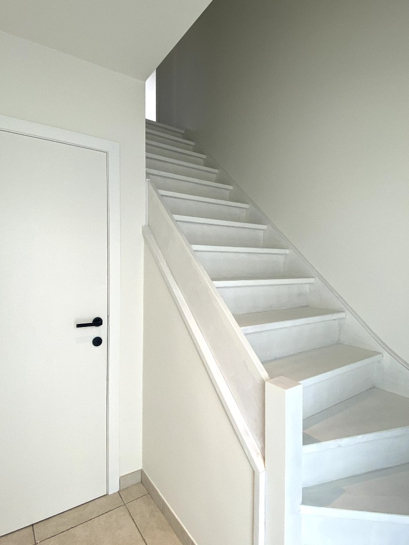 U komt binnen via de inkomhal met apart gastentoilet. Verder is er toegang tot de ruime leefruimte met gezellige houtkachel. Met aansluitende ingerichte open keuken (inductie kookplaat | dampkap | dubbele spoelbak | vaatwasser | koelkast | oven). Zowel vanuit de leefruimte en keuken is er toegang tot de tuin/ruim terras. Verder is er op het gelijkvloers nog een garage met automatische poort. In de garage is er voorziening voor een wasmachine.