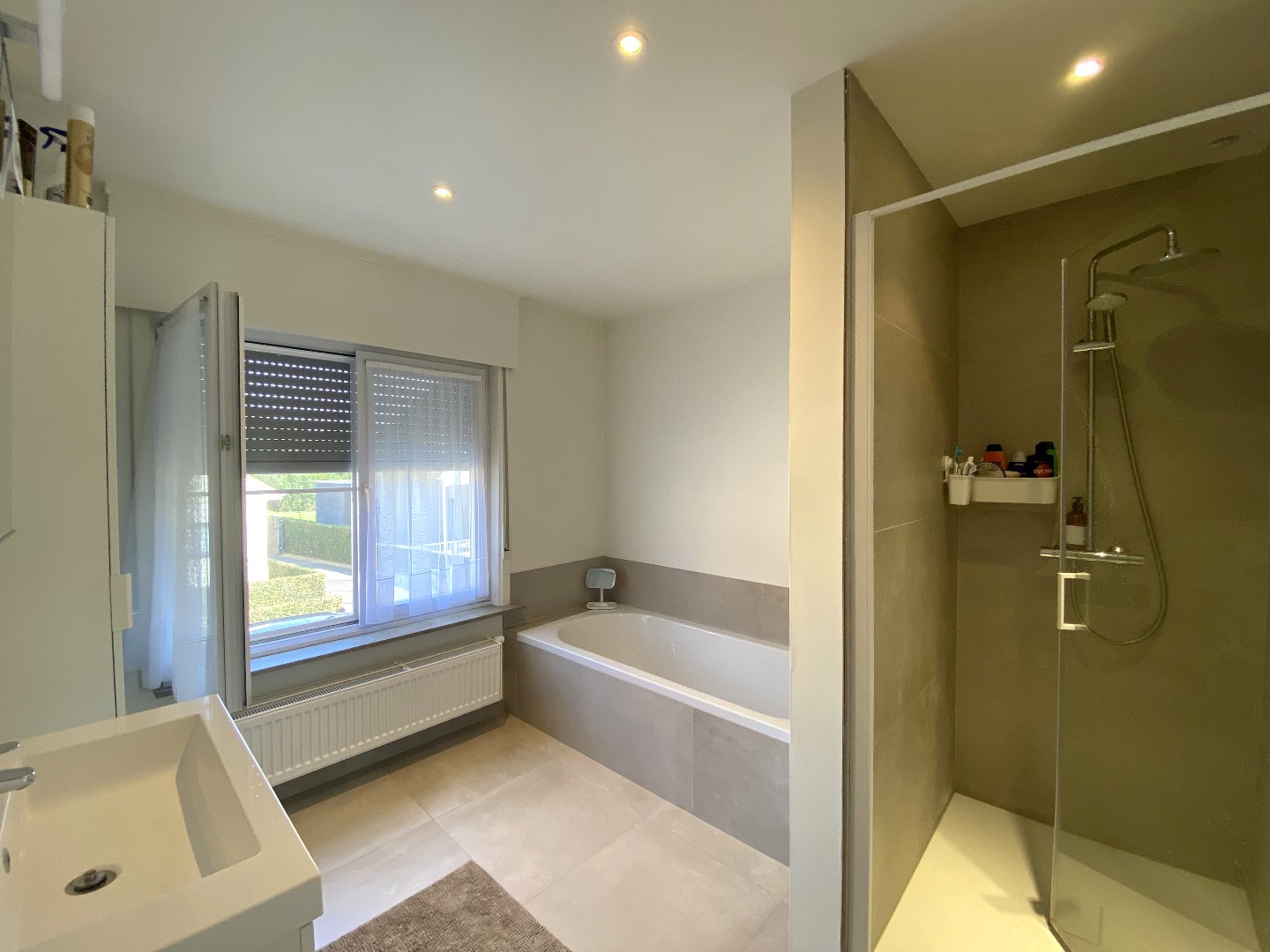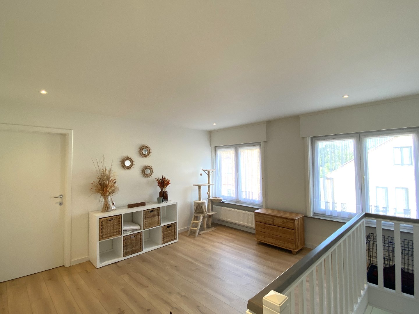 Via een vaste trap kan u het verdiep betreden. Dit omvat een grote nachthall die toegang verleent tot 3 slaapkamers, een badkamer met lavabomeubel, ligbad en douche. Verder omvat het verdiep nog een praktisch zolderberging.