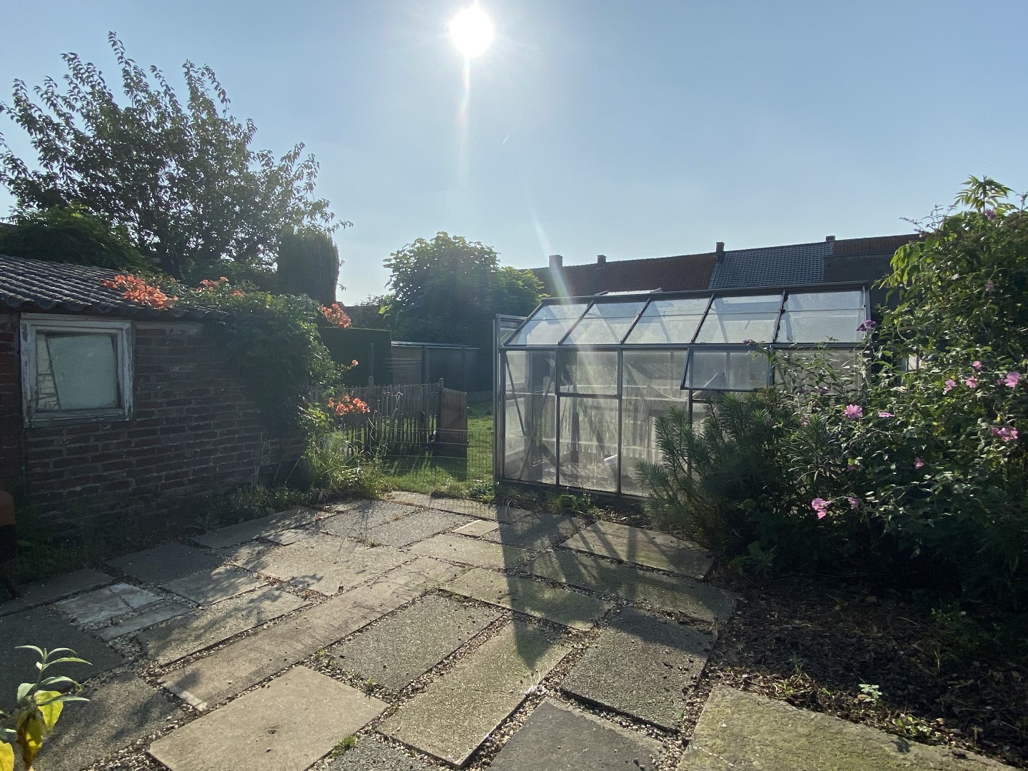 Het exterieur omvat een ruime afgesloten tuin met grote buitenberging. Achter de tuinberging is er nog een extra tuin. Ideaal voor een moestuin of kippen.