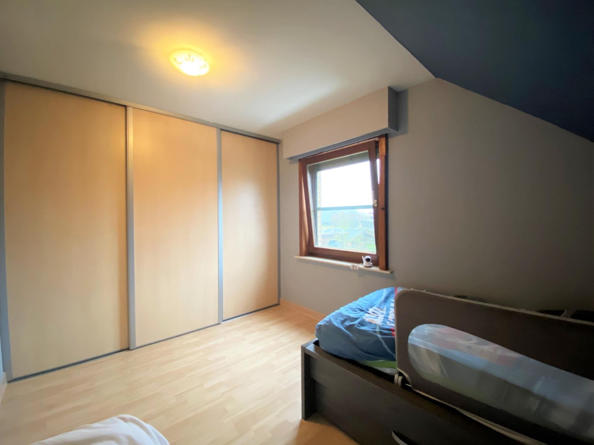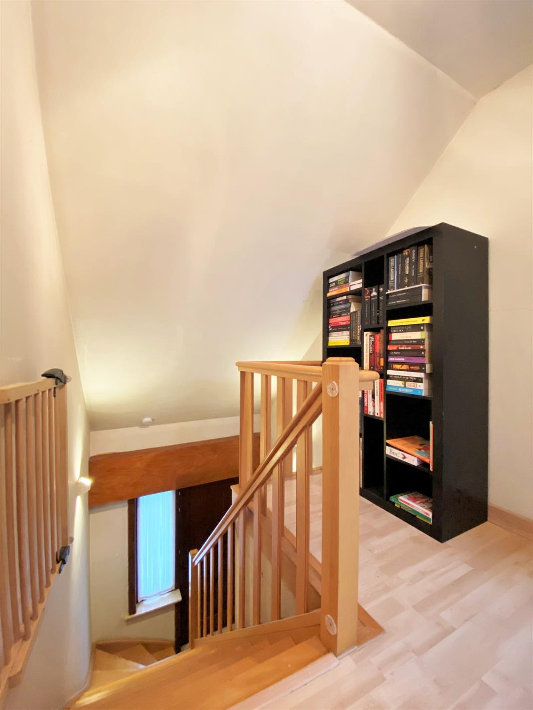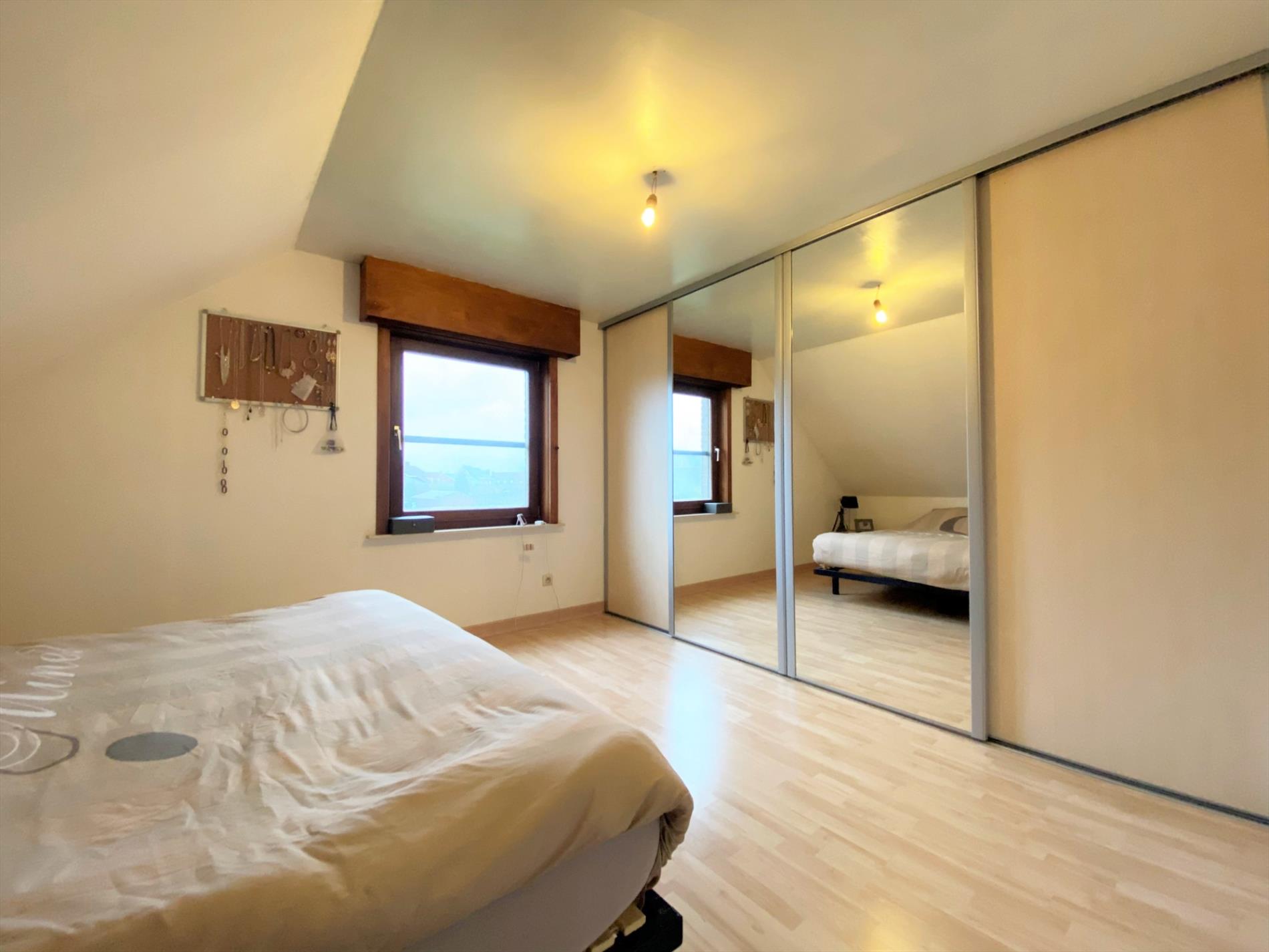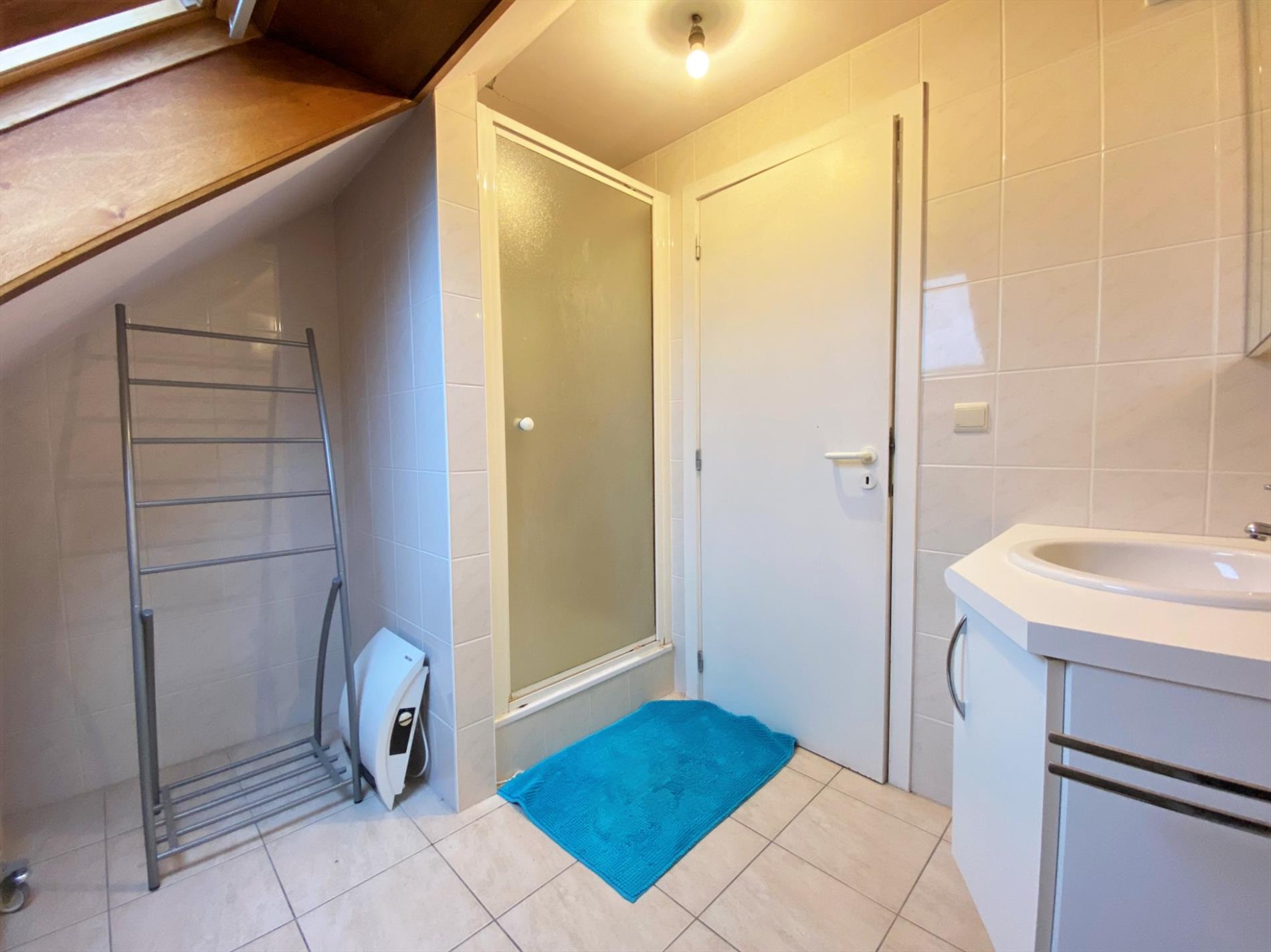 Via een vaste trap komt u terecht op het verdiep. Het verdiep omvat een nachthal, 2 slaapkamers met ingemaakte kast en een badkamer met douche en lavabo. De slaapkamers zijn voorzien van laminaat en rolluiken.