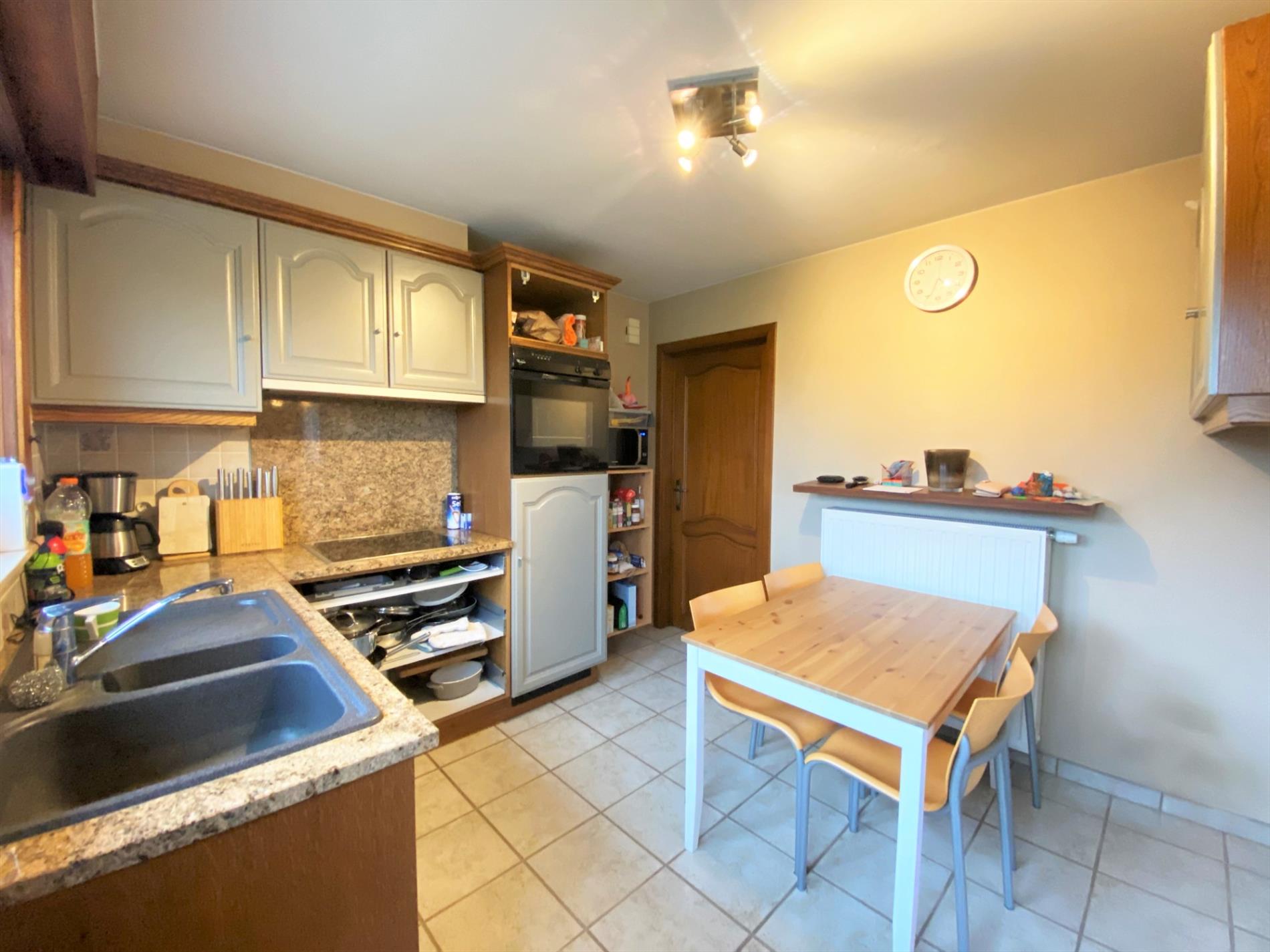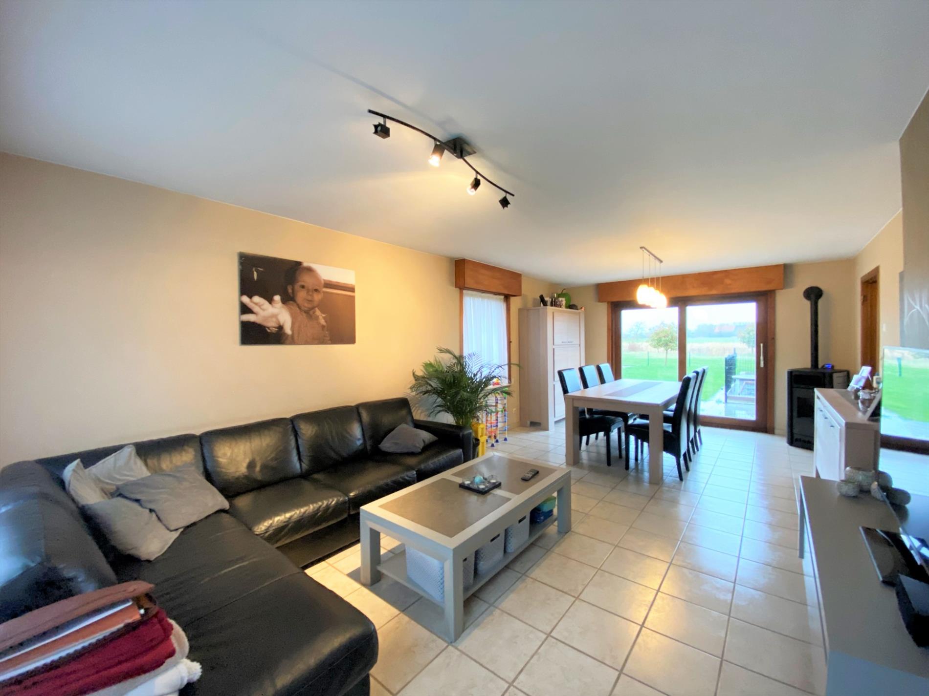 De woning omvat een inkomhal met trappenhal en een gastentoilet, een ruime leefruimte met pellectkachel. Vanuit de leefruimte kan u via het schuifraam het terras en de tuin betreden. Aansluitend is de afgesloten keuken ingericht met toestellen. De keukenkasten werden geschilderd (enkele deurtjes moeten teruggeplaatst worden). Vanuit de keuken kan u de garage en de wasplaats betreden. Via de wasplaats is er ook een mogelijkheid om naar de tuin te gaan. Tevens is er in de garage nog een extra berging.