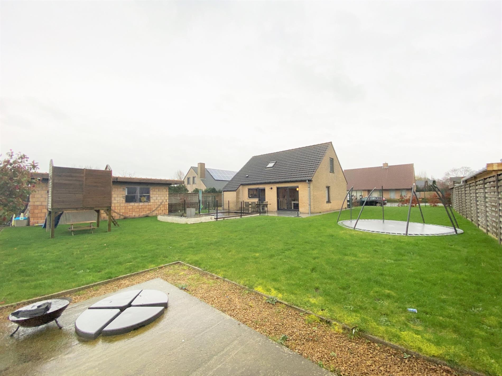 De tuin is volledig afgezet met omheining. Het tuinhuis is nog niet volledig afgewerkt, de eigenaar zal hier het nodige voor doen. De vijver zal ook gedicht worden.