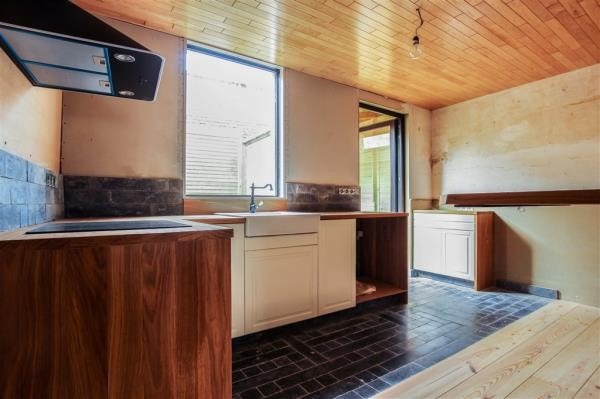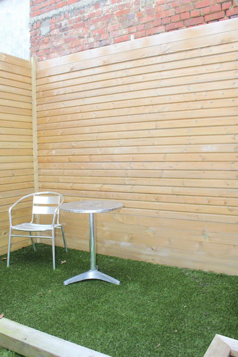 Woning bestaat uit een leefruimte (nieuwe kachel op aardgas), keuken (volledig ingericht, oven/ kookplaats/ dampkap/ vaatwas/ microgolf/spoelbak) en een afgewerkt terras (kunstgras) met tuinberging.