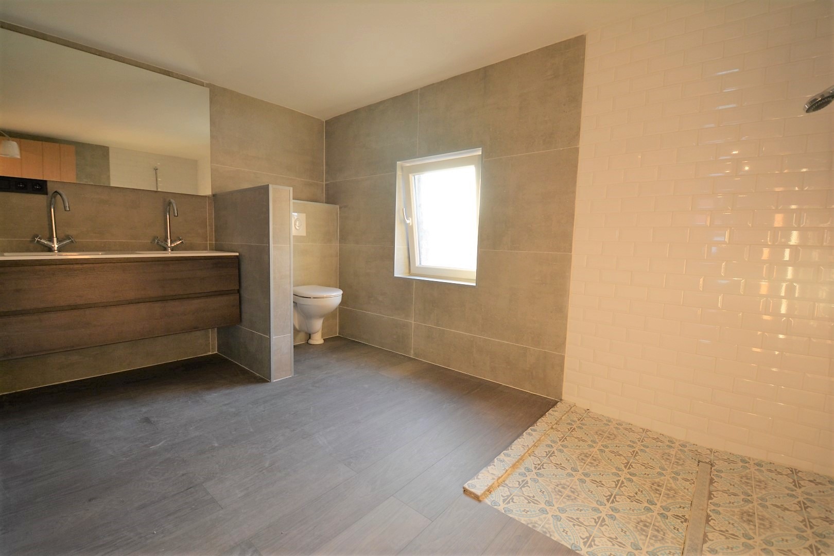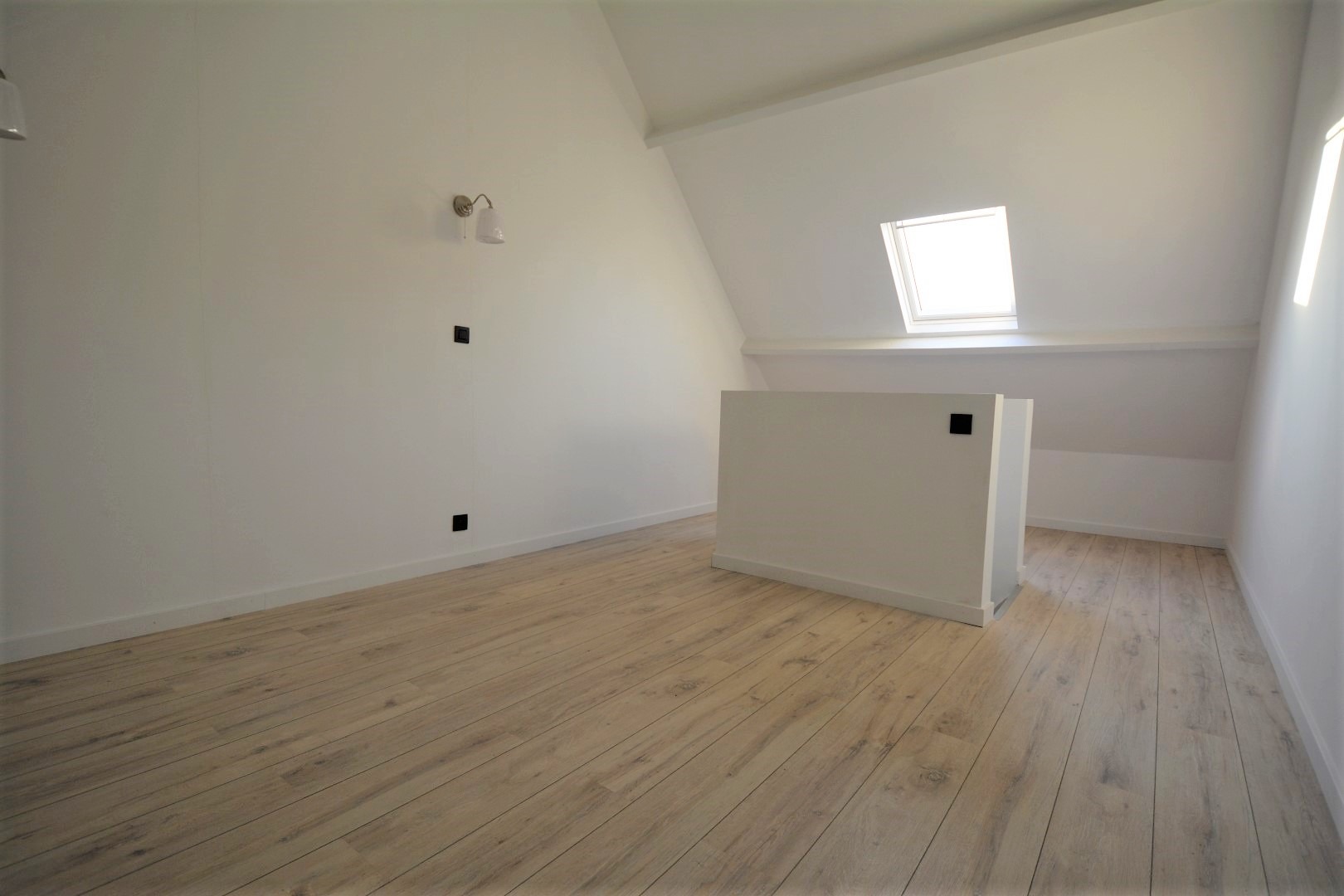 Het eerste verdiep omvat een volledig nieuwe badkamer ( inloopdouche - toilet - lavabo ) en de eerste slaapkamer.