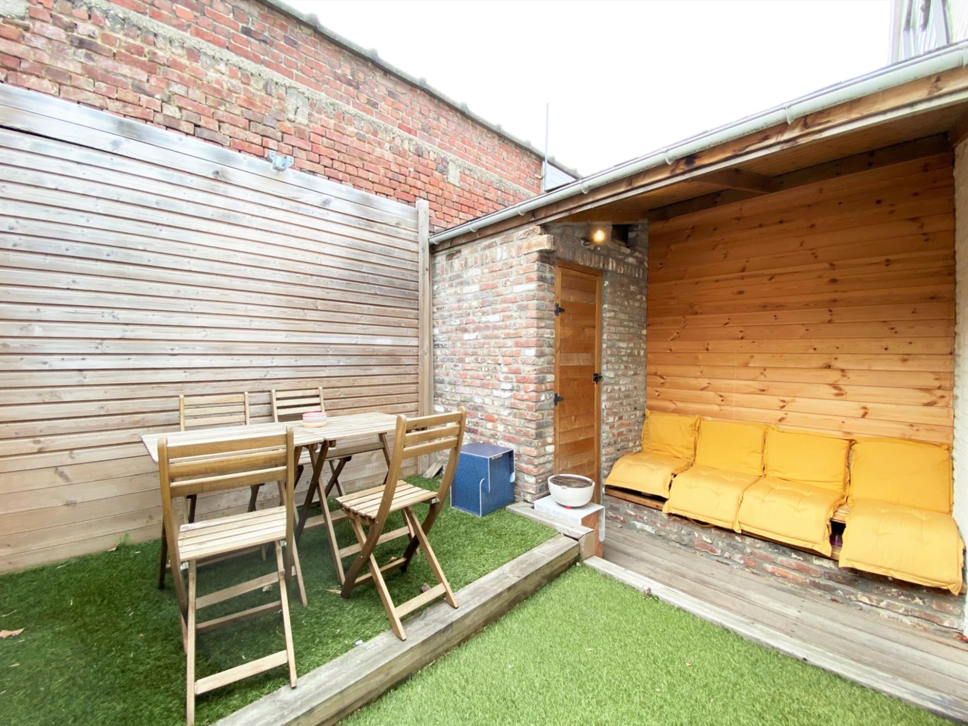 De woning is voorzien van alle comfort en omvat een leefruimte (kachel op aardgas), keuken (volledig ingericht -oven - kookplaat - dampkap - vaatwas- microgolf - spoelbak) en een afgewerkt terras (kunstgras) met tuinberging.