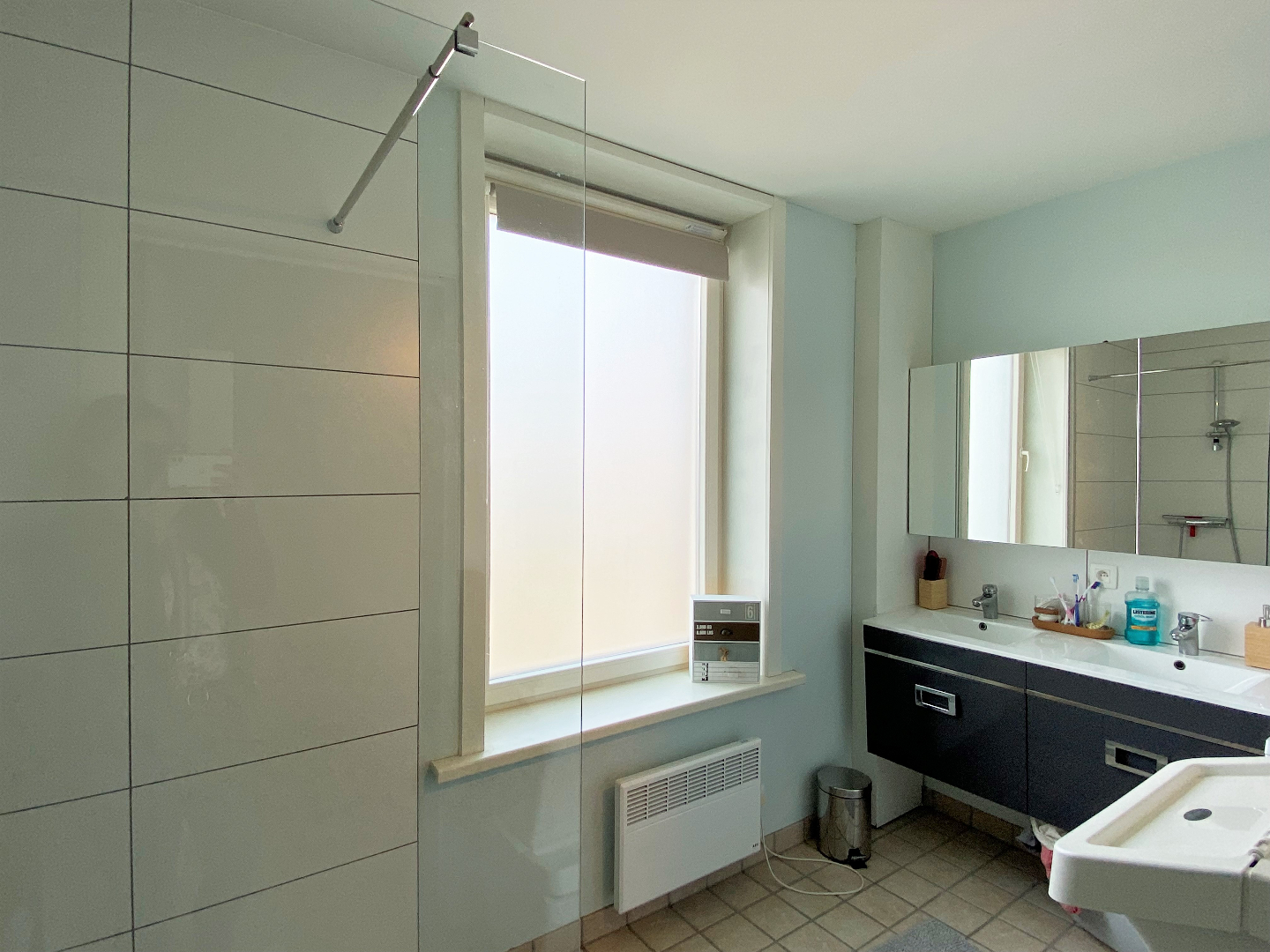 Via een vaste trap komt U terecht op de eerste verdieping. Het verdiep omvat 3 slaapkamers en een badkamer met dubbele lavabo met meubel en een inloopdouche. In de badkamer is er een aansluiting voor de wasmachine voorzien. Via de 2de slaapkamer kan u de geïsoleerde zolder betreden met een vaste trap.