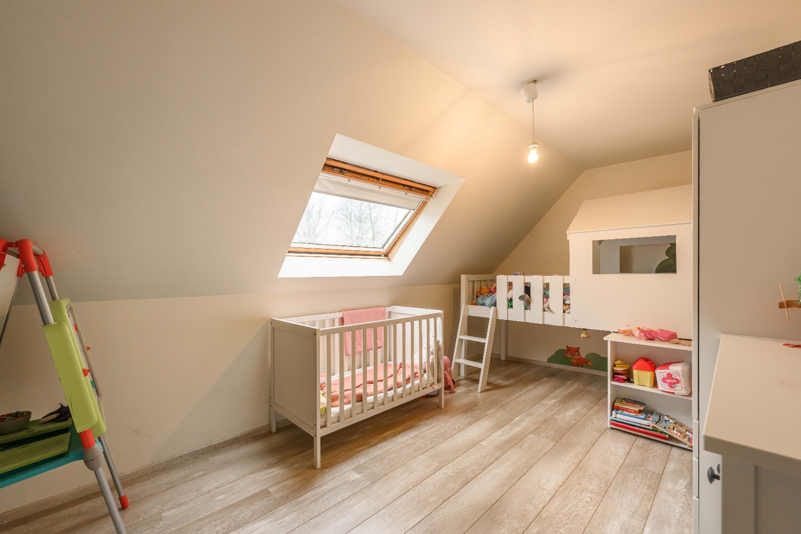 Het verdiep geniet een ruime hall met toegang tot 2 ruime slaapkamers (18 m² | 15,50 m²) en een ingerichte badkamer (dubbele lavabo met meubel | ligbad | douche) en apart toilet.