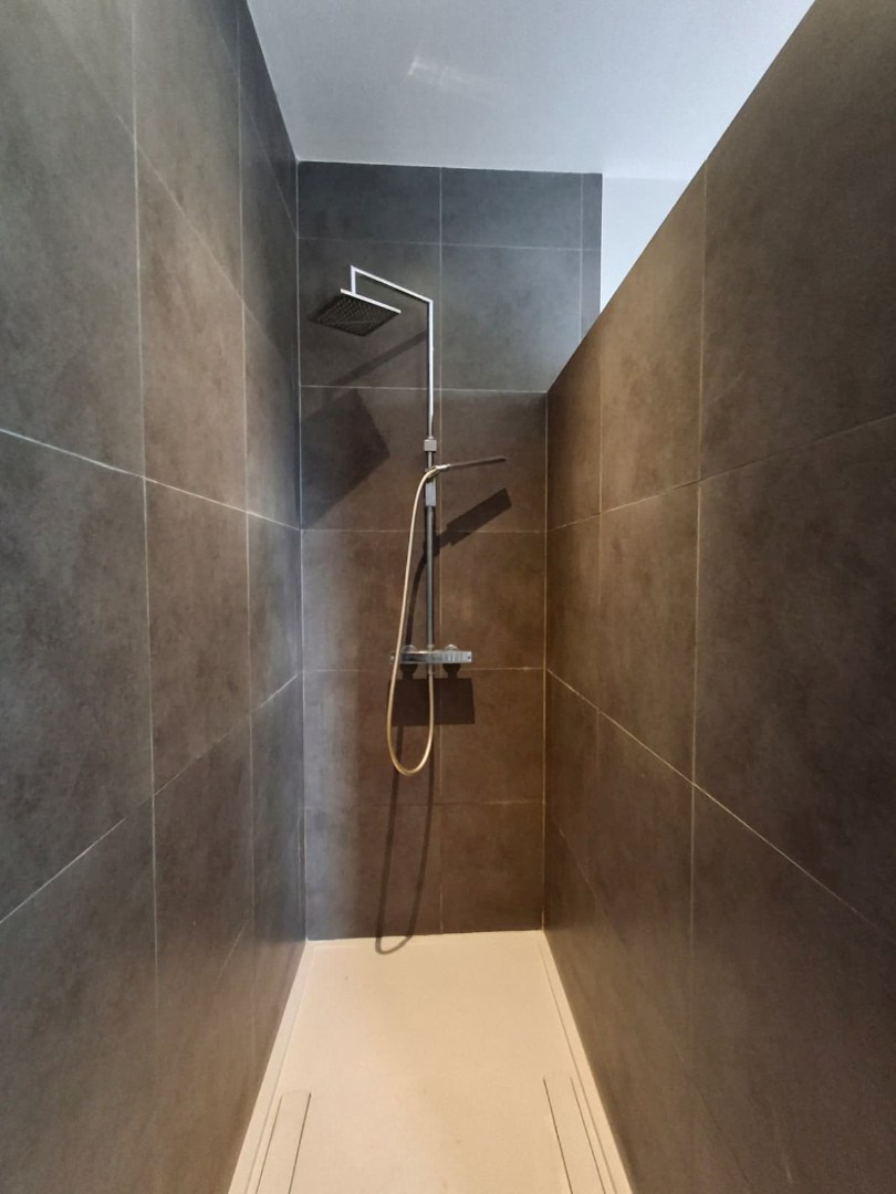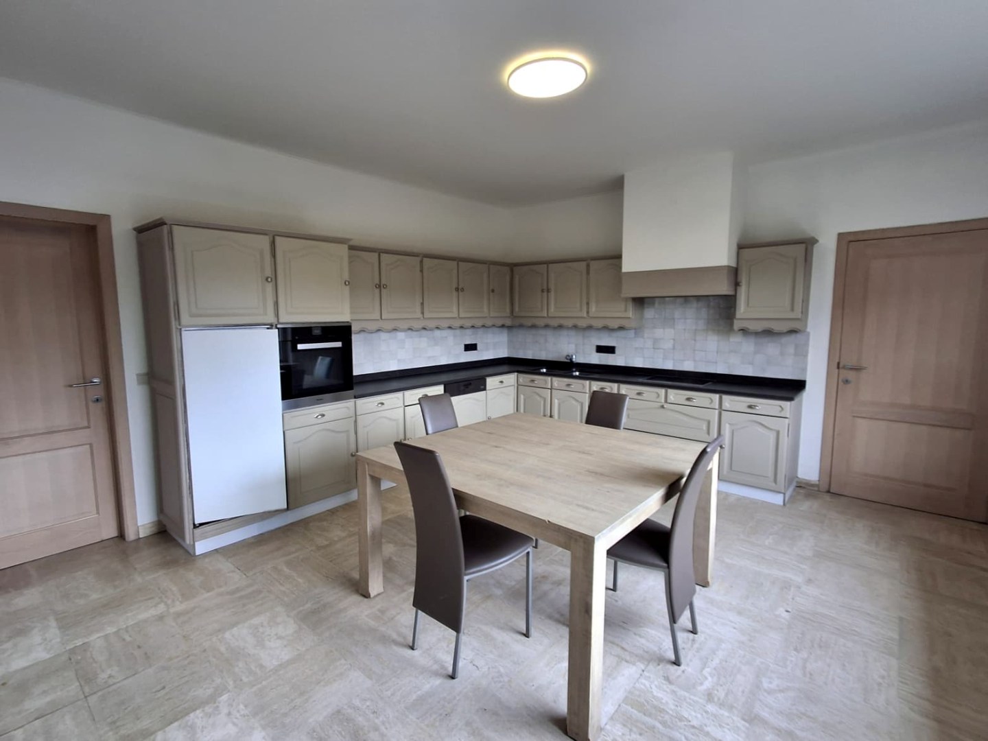 De leefruimte is ruim en geniet van veel natuurlijke lichtinval. De keuken is volledig uitgerust met een vaatwasser, kookplaat, dampkap, oven, koelkast en spoelbak.