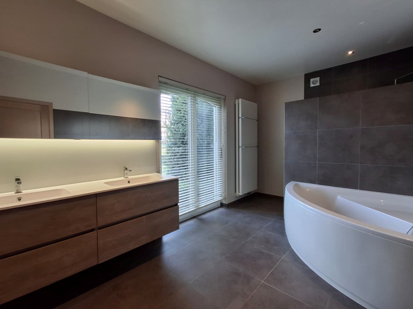 Bij het binnenkomen betreedt u de inkomhal, waar u toegang heeft tot een apart gastentoilet. Vanuit de inkomhal loopt u verder naar de nachthal, die toegang biedt tot de twee ruime slaapkamers. Daarnaast bevindt zich hier ook de badkamer, uitgerust met een dubbele lavabo, een douche en een ligbad. In de nachthal is bovendien een aparte dressing voorzien, wat zorgt voor extra praktische opbergruimte.