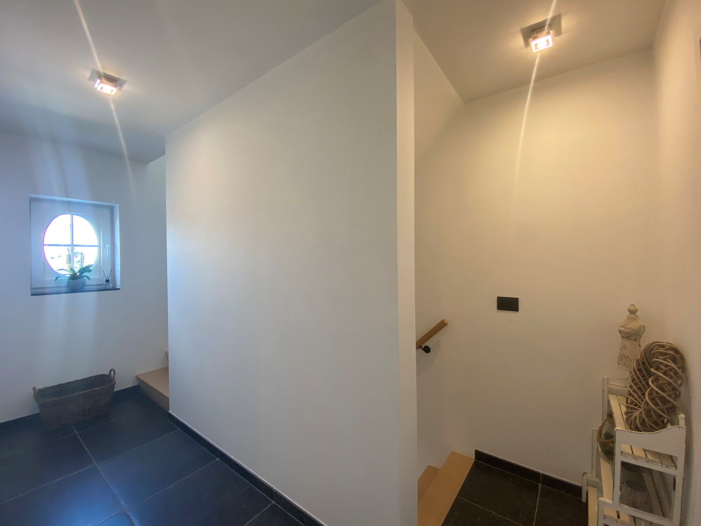 Het verdiep telt een nachthall met apart toilet, drie slaapkamers, een berging én de badkamer. De badkamer is voorzien van een dubbele lavabo - bad én inloopdouche.