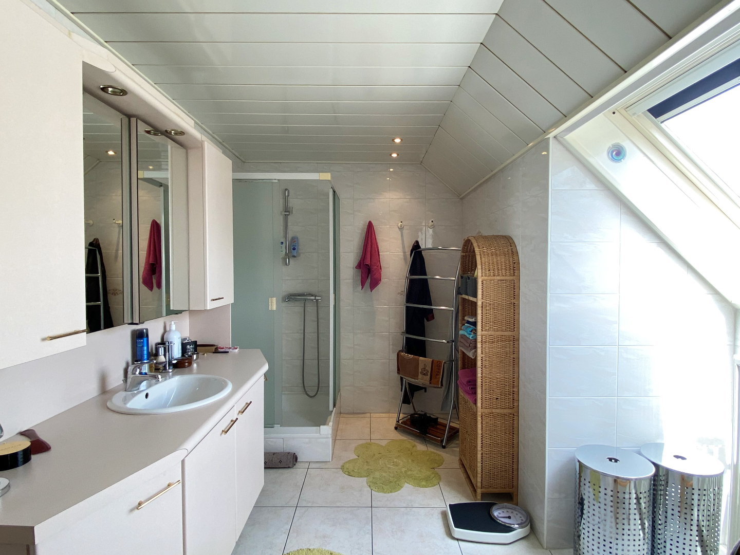 Via de vaste trap komt U op het verdiep terecht. Dit verdiep omvat een nachthal, 2 slaapkamers, een technische ruimte en de tweede badkamer. Deze badkamer omvat een toilet, een douche en een lavabo met meubel. Via de vouwtrap komt U op de zolderruimte terecht.