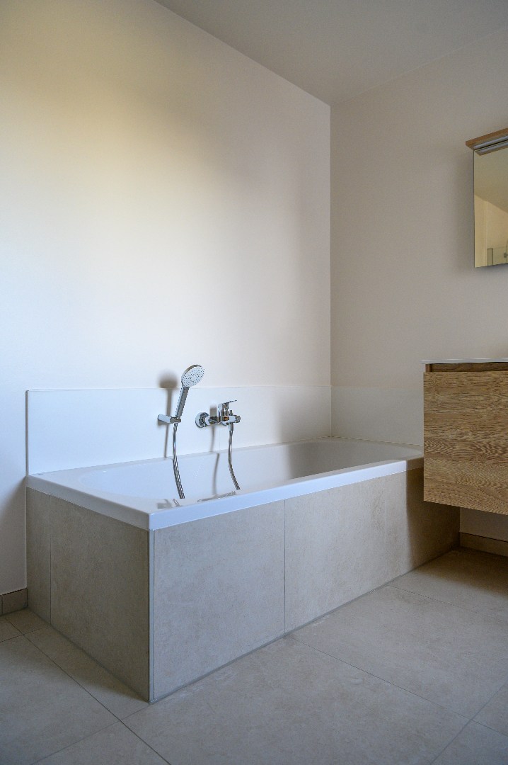 Via een vast trap komt u op de eerste verdieping. Dit verdiep omvat 3 slaapkamers, een moderne badkamer (douche | ligbad | dubbel lavabomeubel), toilet, bergruimte.