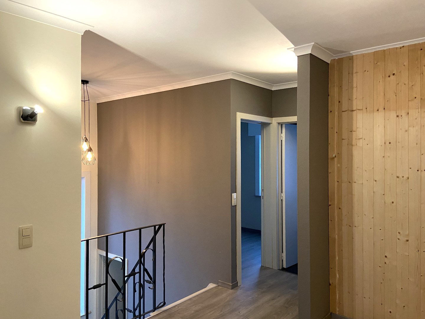 Via een vaste trap komt U terecht op het verdiep. Het verdiep is voorzien van een ruime nachthal, 3 slaapkamers (waarvan 2 kamers voorzien zijn van airco/warmtepomp), een badkamer met lavabomeubel en douche. Op dit verdiep is er nog een dressing en een bureau. Via het bureau is er een uitschuifbare trap die toegang biedt tot de geïsoleerde zolder (vloerplaat). Vooraan de woning is er nog een gezellig terras te betreden via de slaapkamers vooraan.