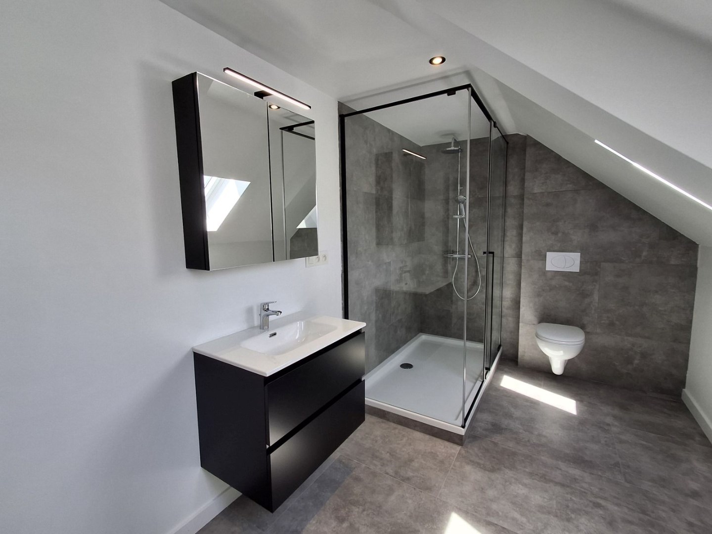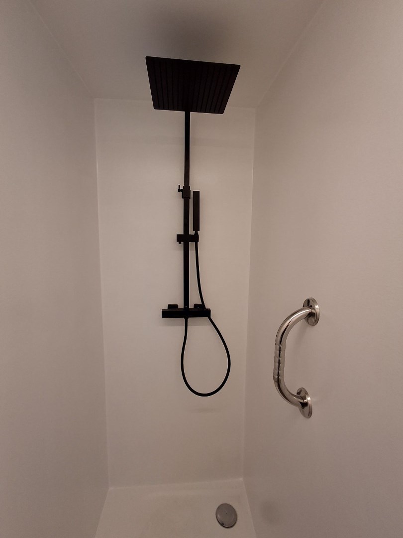 Vanuit de leefruimte kan u naar de achterinkom, waar toegang wordt verleend tot de eerste badkamer (voorzien van een inloopdouche | toilet en lavabomeubel). Verder heeft u toegang tot de dubbele inpandige garage, waar zich ook een ruime berging bevindt met diepvries. Via een vaste trap in de garage bereikt u de zolderverdieping, ideaal als extra opslagruimte.