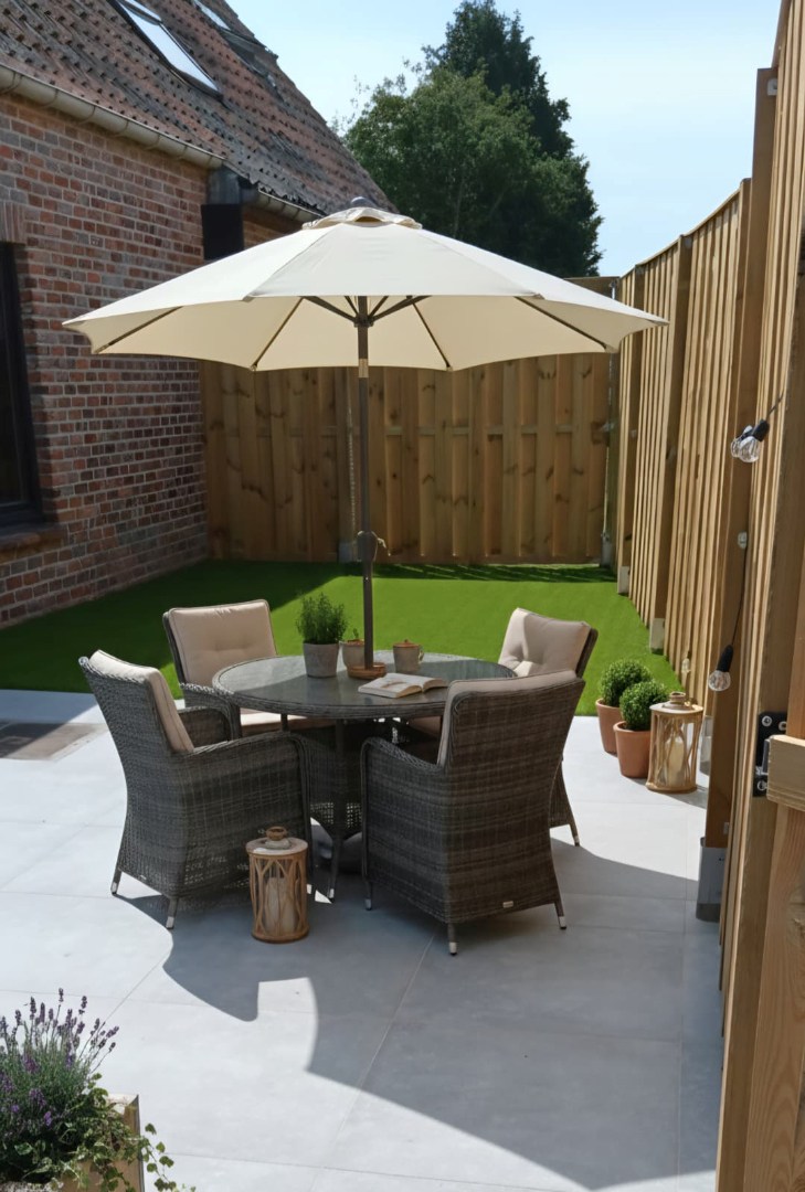 Aan de achterzijde van de woning is er een gezellig terras.