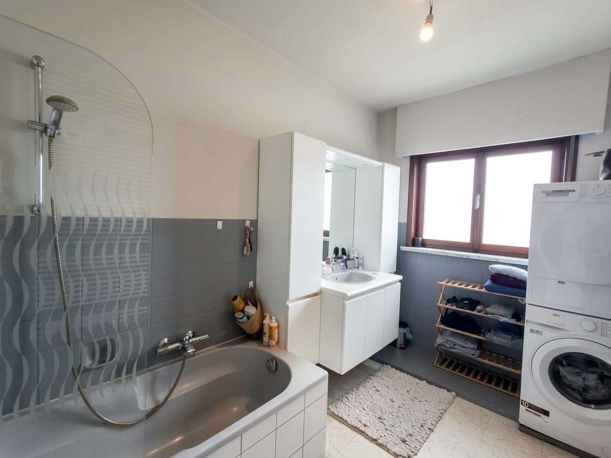 U komt de woning binnen via de inkomhal die voorzien is van ingemaakte kasten. De inkomhal biedt zowel toegang tot de woonkamer als de keuken. De ruime en lichtrijke woonkamer beschikt over een ingebouwde houtcassette en geeft uit op het terras aan de voorkant van de woning en de eerste twee slaapkamers. Verder komen we tot de ingerichte keuken die voorzien is van een oven | koelkast | dampkap | kookplaat en spoelbak. Via de keuken is de derde slaapkamer, badkamer en garage toegankelijk. De badkamer is voorzien van een ligbad/douche | lavabomeubel en aansluiting voor de wasmachine. Op het gelijkvloers is ook nog een ruime garage, een apart toilet en aparte berging aanwezig.