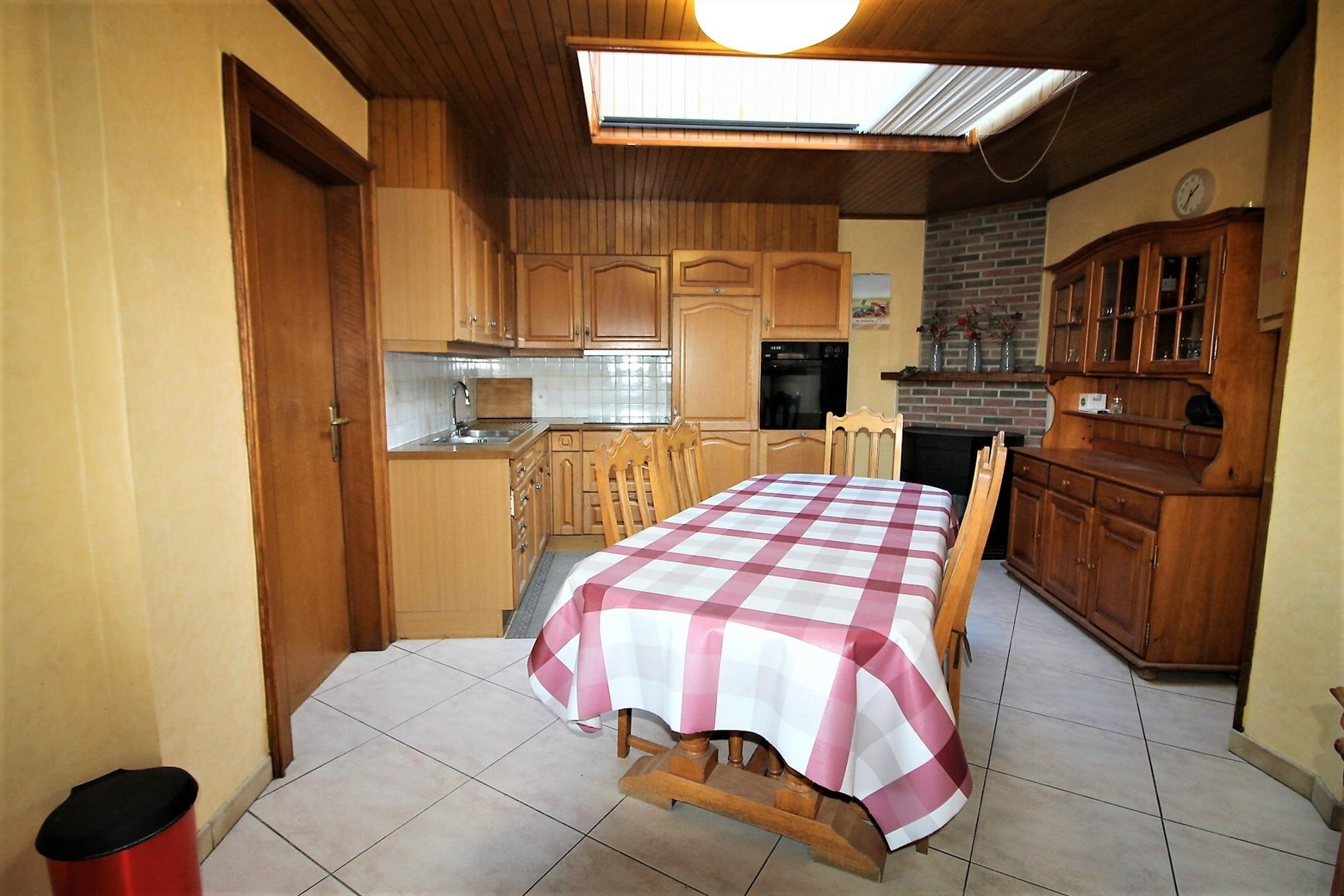 De woning omvat een inkomhal met enerzijds toegang tot de eerste slaapkamer of bureauruimte (op het gelijkvloers) en anderzijds tot de woonkamer. De woonkamer wordt verwarmd aan de hand van een gaskachel. Vervolgens komt U terecht in de keuken die voorzien is van alle comfort. Deze wordt ook verwarmd door het gebruik van een gaskachel.