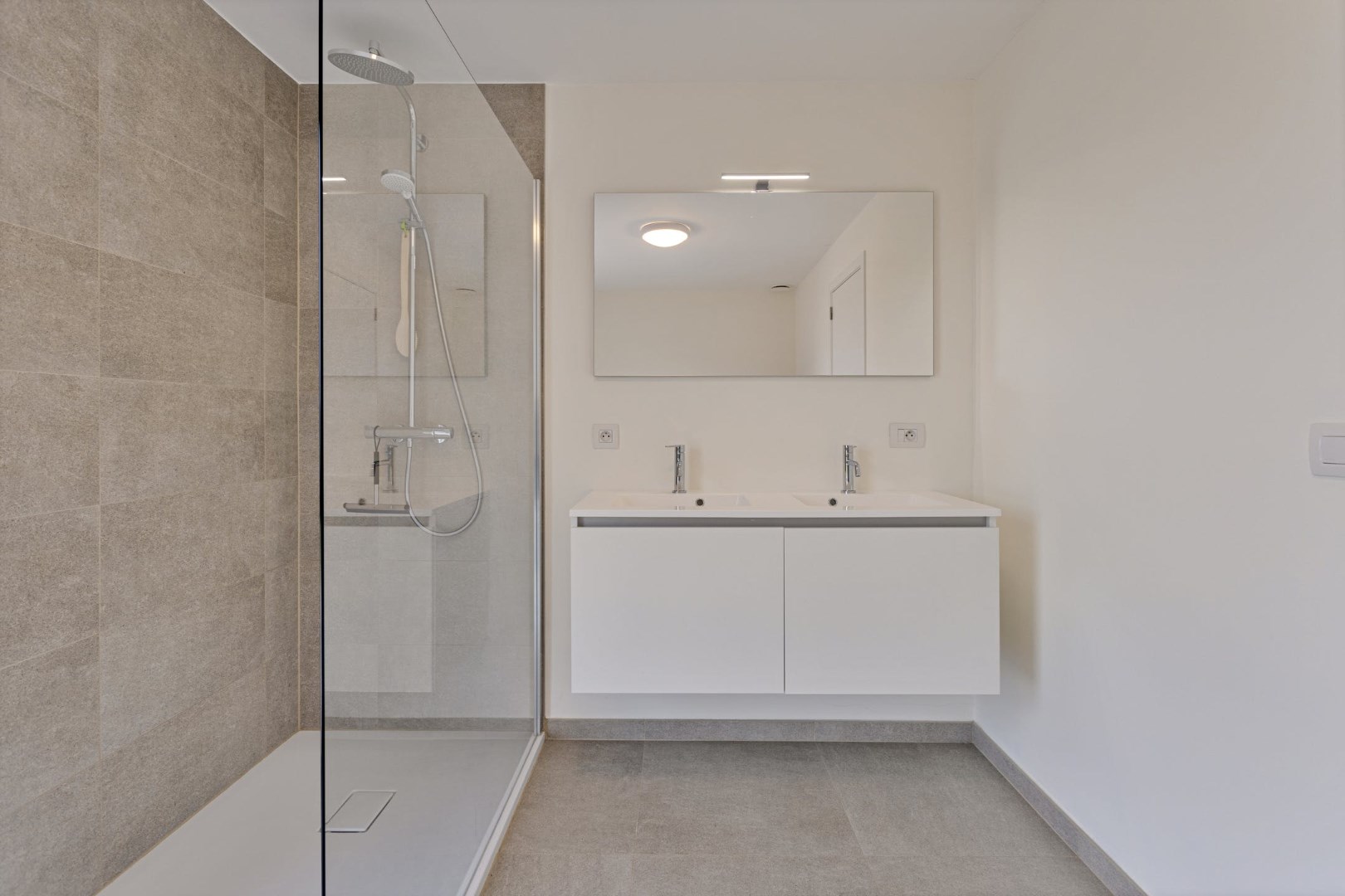 Het verdiep omvat 3 slaapkamers (12 m² | 9 m² | 8,50 m²) en een badkamer voorzien van een dubbele lavabo | inloopdouche | ligbad en toilet. Tot slot is er nog de geïsoleerde zolder toegankelijk met een vouwtrap.