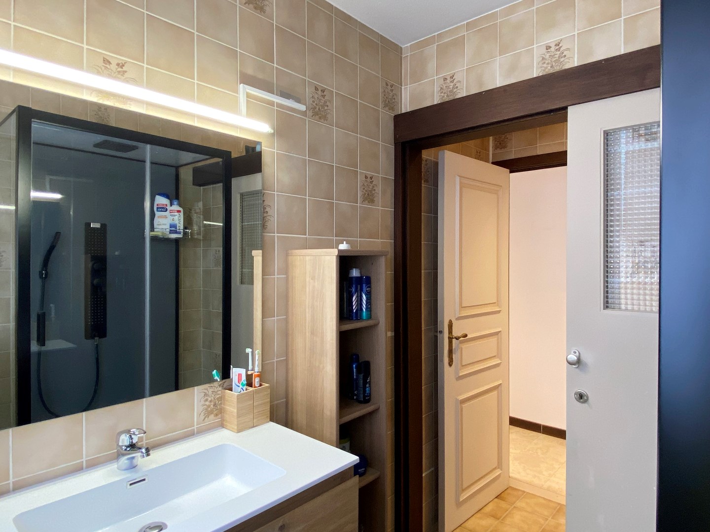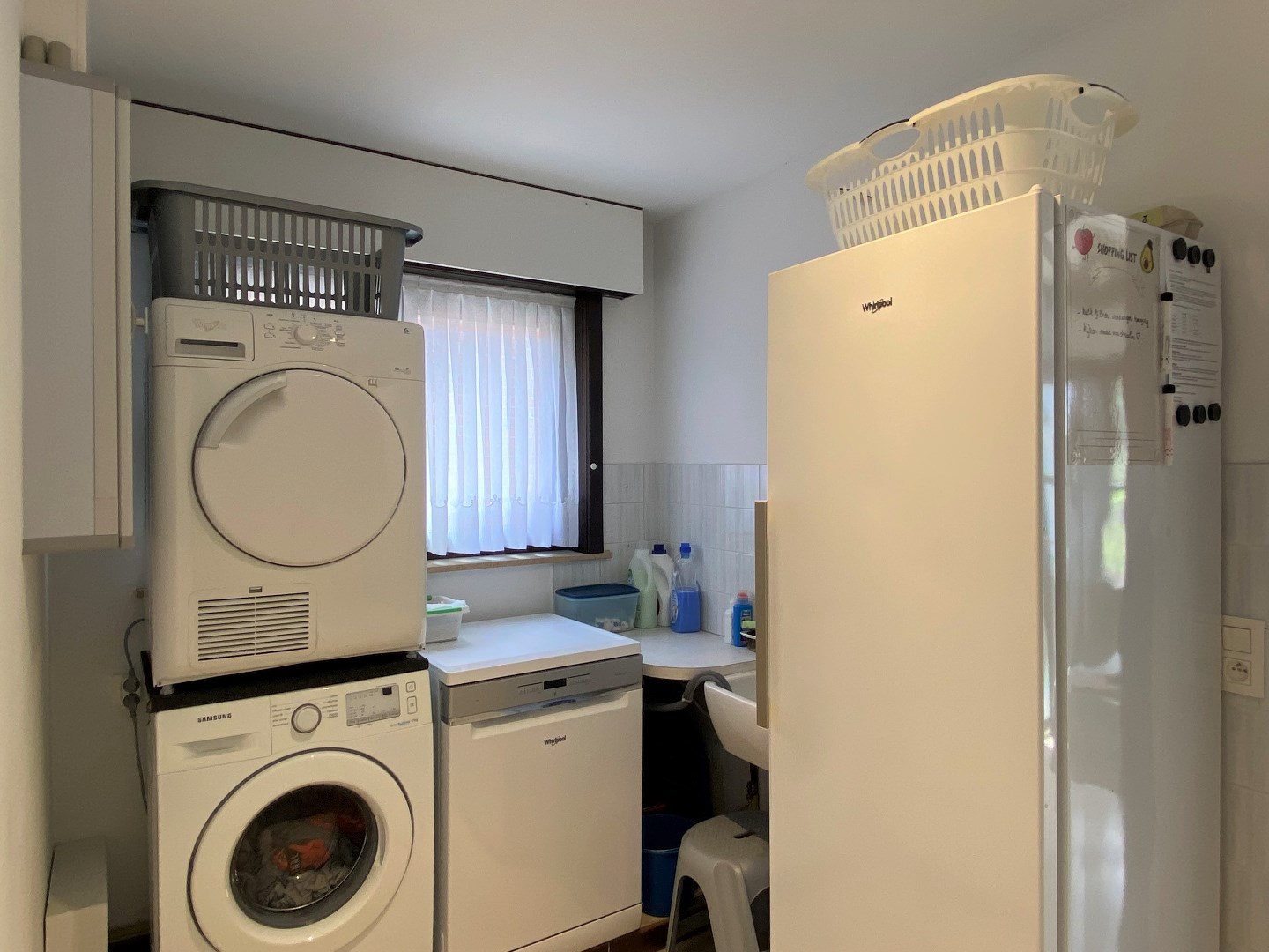 U komt binnen langs de zijkant van de woning en komt terecht in een ruime inkomhal met trappenhal. Op het gelijkvloers bevindt zich de badkamer met vernieuwde douche, lavabo en toilet (kan afgesloten worden van elkaar met een schuifdeur), berging met voldoende legplanken, bureau (kan ook dienen als extra slaapkamer), lichtrijke leefruimte, gesloten ingerichte keuken (koelkast | kookplaat | dampkap | oven) en wasplaats (aansluiting wasmachine). Vanuit de keuken kan u het terras en de tuin betreden.