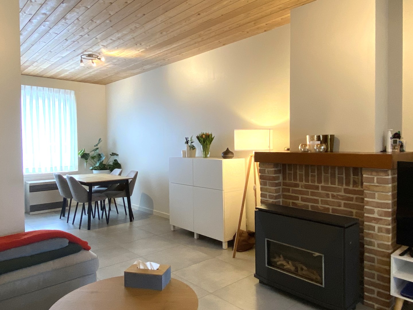 U komt binnen via de inkomhal met trappenhal die toegang geeft tot het apart toilet en de leefruimte. De leefruimte omvat een zitruimte en een eetplaats. Via de leefruimte komt u terecht in de open ingerichte keuken met zicht op de aangelegde tuin. De keuken is ingericht met een koelkast - dampkap - kookplaat -vaatwasmachine. Tevens is er in de keuken plaats om een eettafel te zetten. Verder in de woning bevindt zich de badkamer met dubbele lavabo's en douche (nieuw). De woning werd recent geschilderd en werd voorzien van lichtarmaturen!