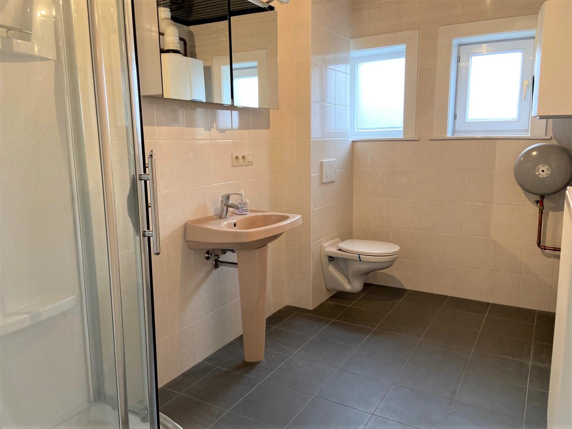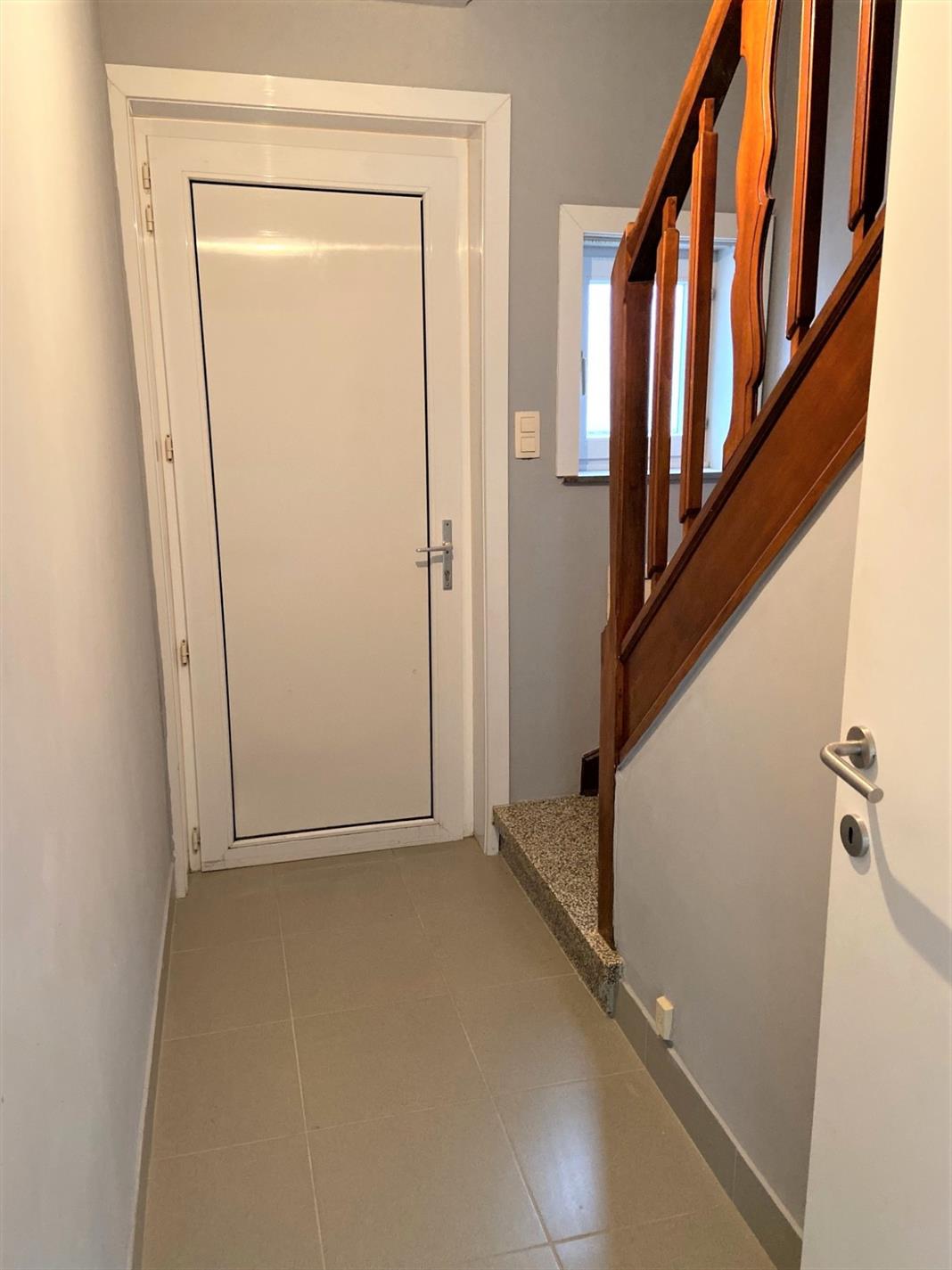 We betreden de woning via de inkomhal die toegang verleent tot de lichtrijke leefruimte. De leefruimte biedt rechtstreeks toegang tot de volledige ingerichte keuken (kookplaat | dampkap | vaatwasser | oven | dubbele spoelbak | koelkast met vriesvak) met aansluitend de droge kelder. Verder op het gelijkvloers is er de badkamer voorzien van douchecabine, lavabo en toilet.