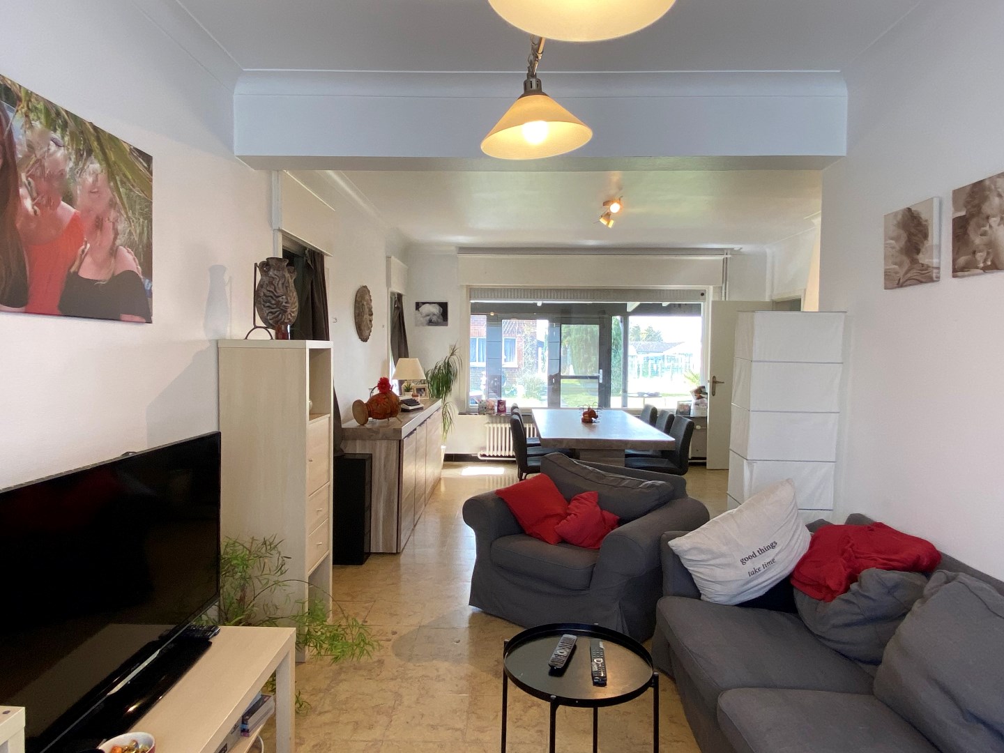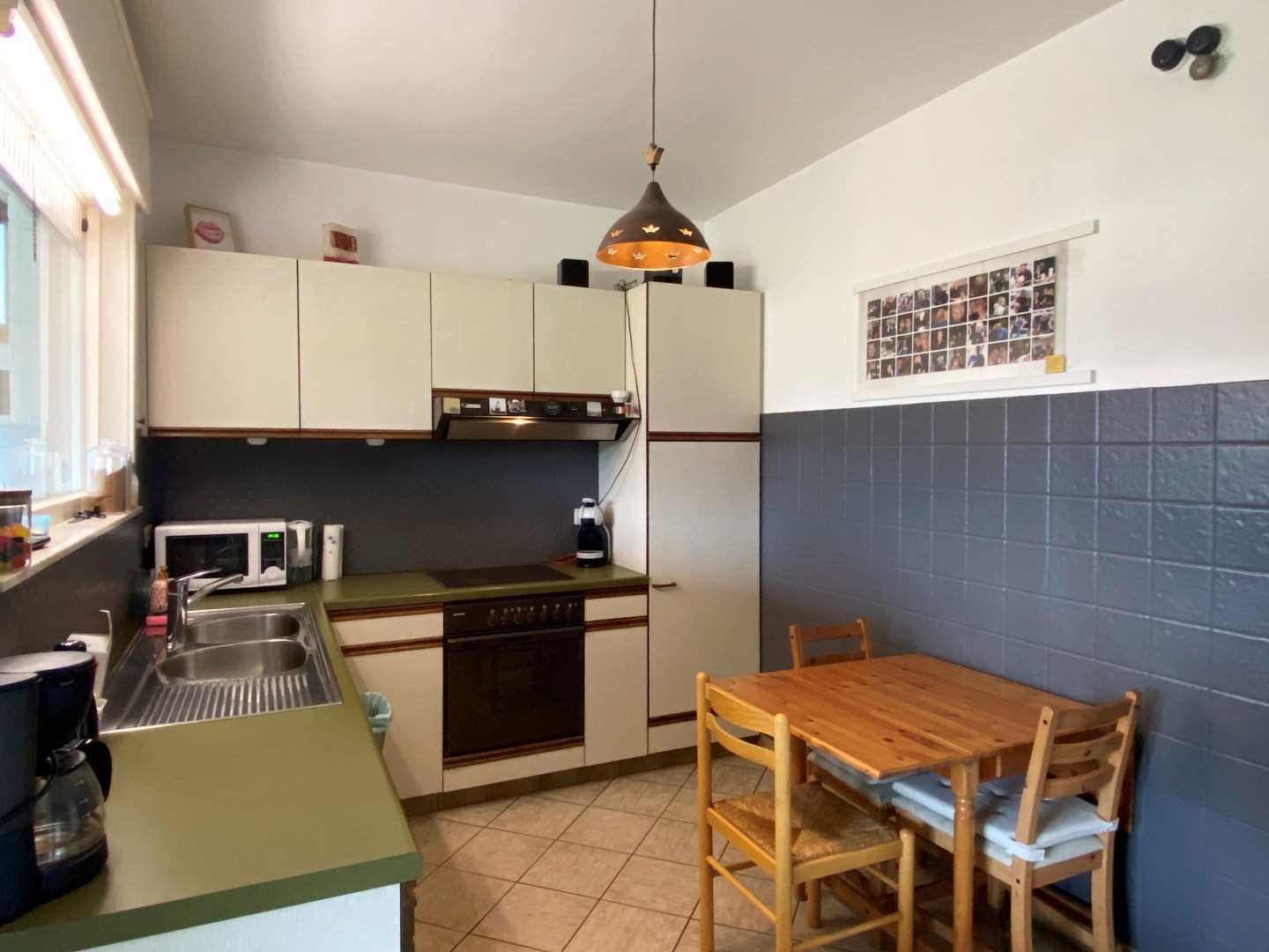 U komt binnen via de inkomhal met trappenhal die toegang verleent tot de leefruimte met zithoek en eetplaats. Via de eetplaats komt u terecht in de keuken geïnstalleerd met koelkast | dampkap | elektrische kookplaat | oven. Verder kan u vanuit de keuken de veranda betreden en de garage. In de garage is er plaats voor een wasmachine. De garage biedt toegang tot de kelder en het gastentoilet.