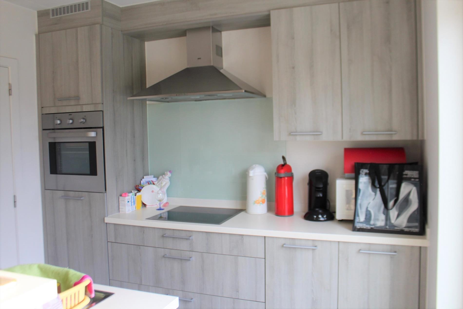 De keuken omvat een spoelbak, kookplaat, dampkap, koelkast, oven en een vaatwas. Via de keuken is er toegang tot de zongerichte tuin en tot de berging. Berging is voorzien van stapelplaats en aansluiting wasmachine en droogkast.
