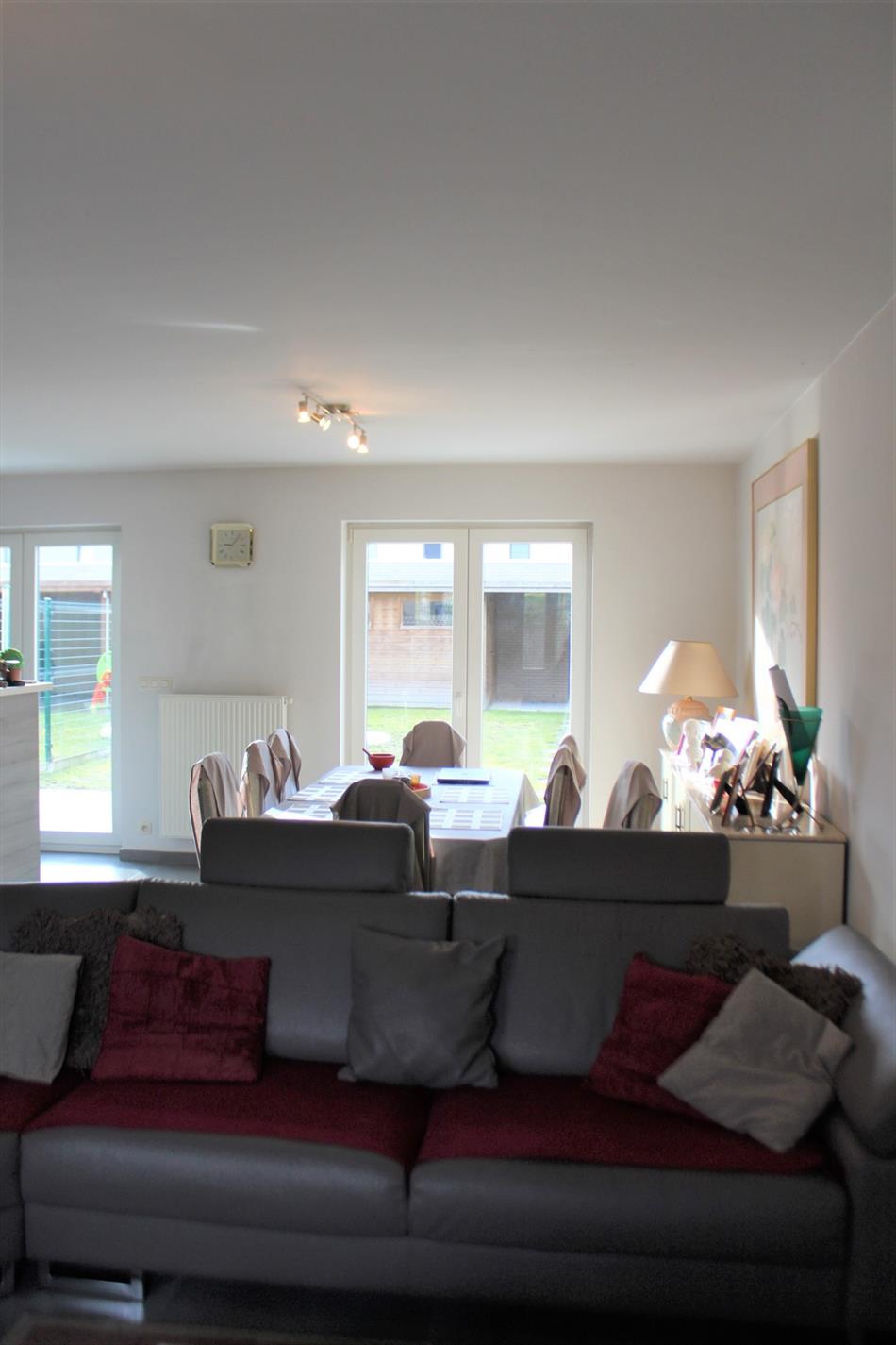 Woning is voorzien van een inkomhall met gastentoilet, open leefruimte - eetplaats met aansluitend de ingerichte keuken.