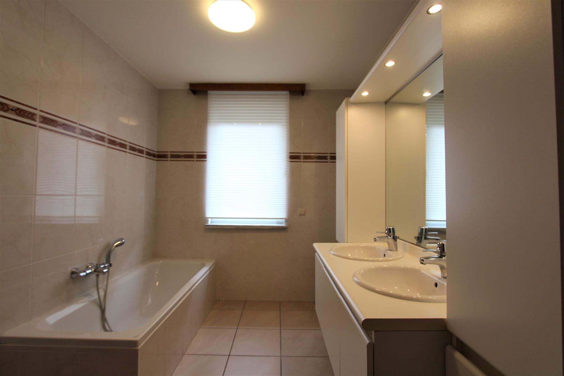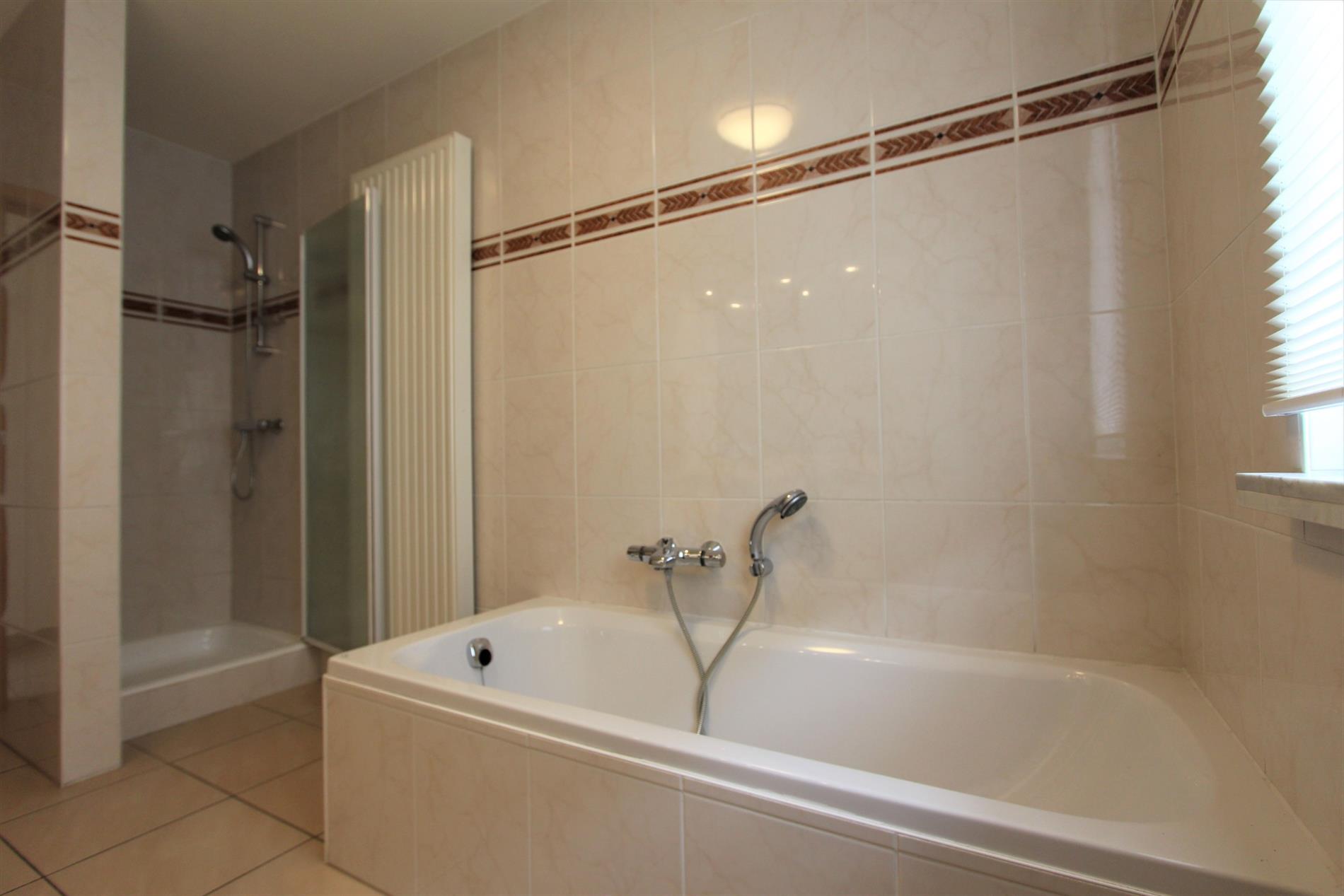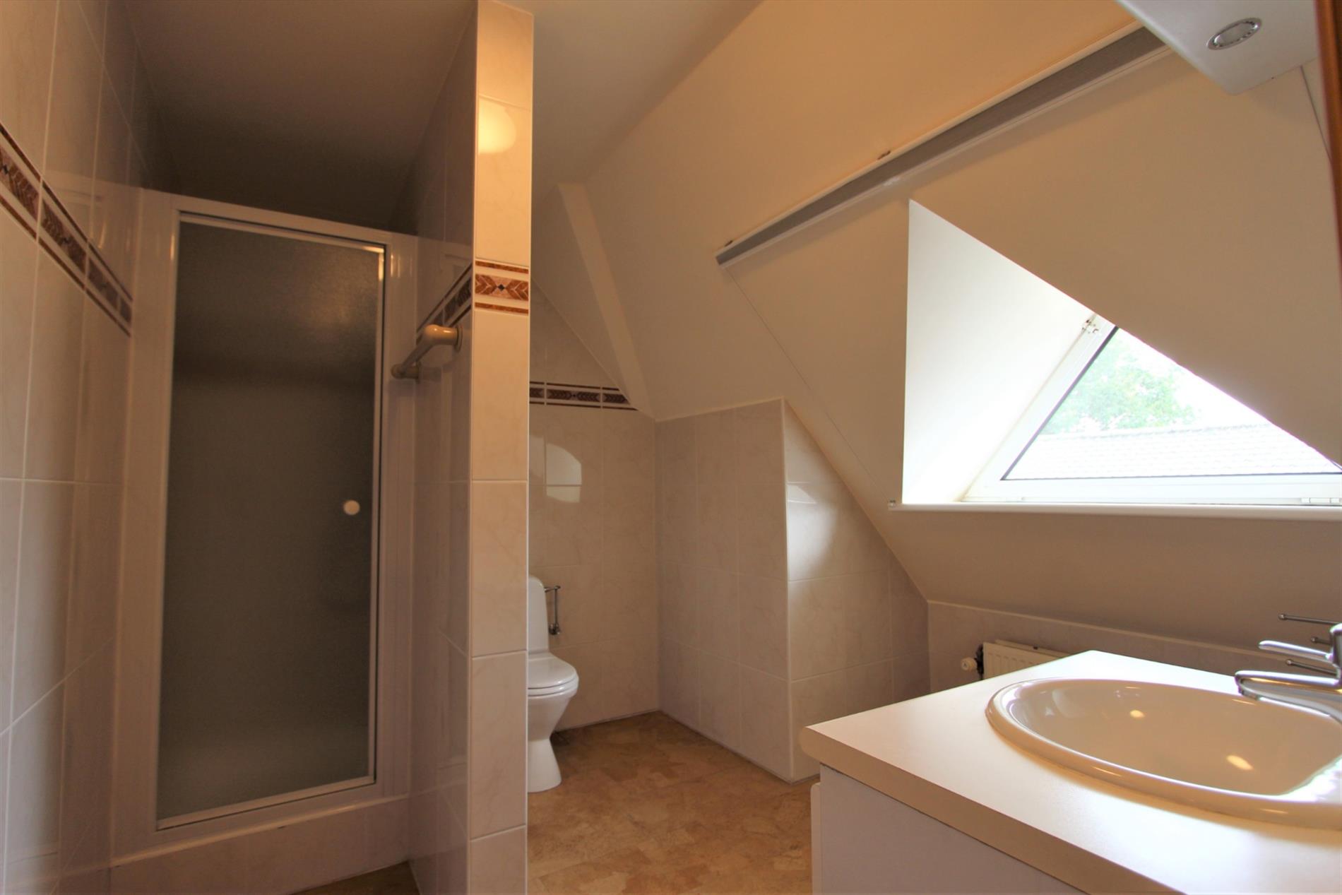 Via een vaste trap komt men op het eerste verdiep. Dit verdiep omvat een nachthall, één zeer ruime slaapkamer, één kleine slaapkamer, een aparte berging en de badkamer ( douche - toilet en lavabo). Tot slot is er een zolder aanwezig.