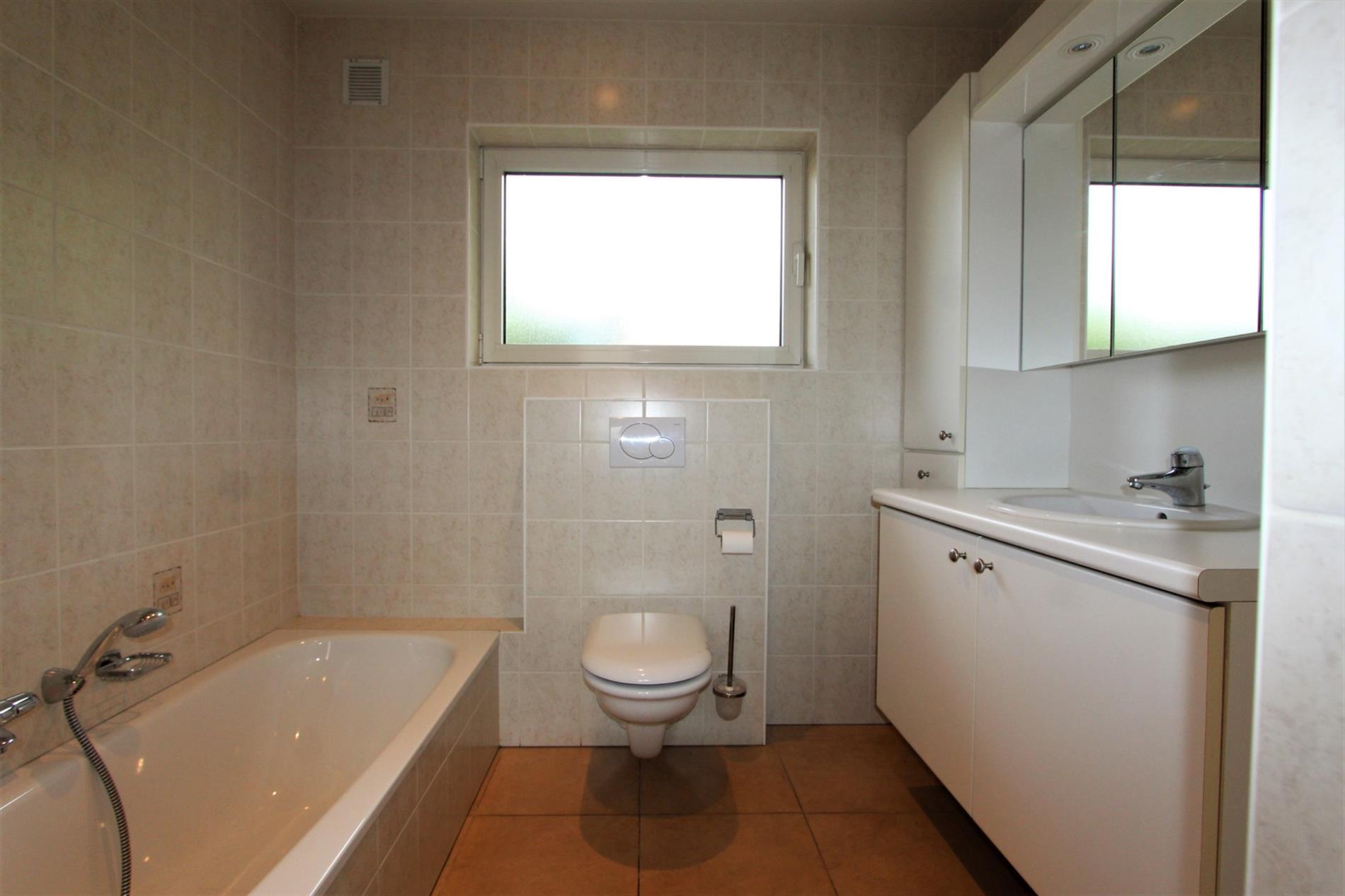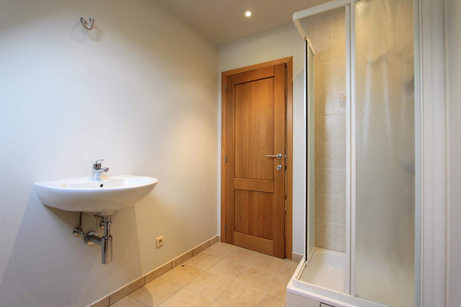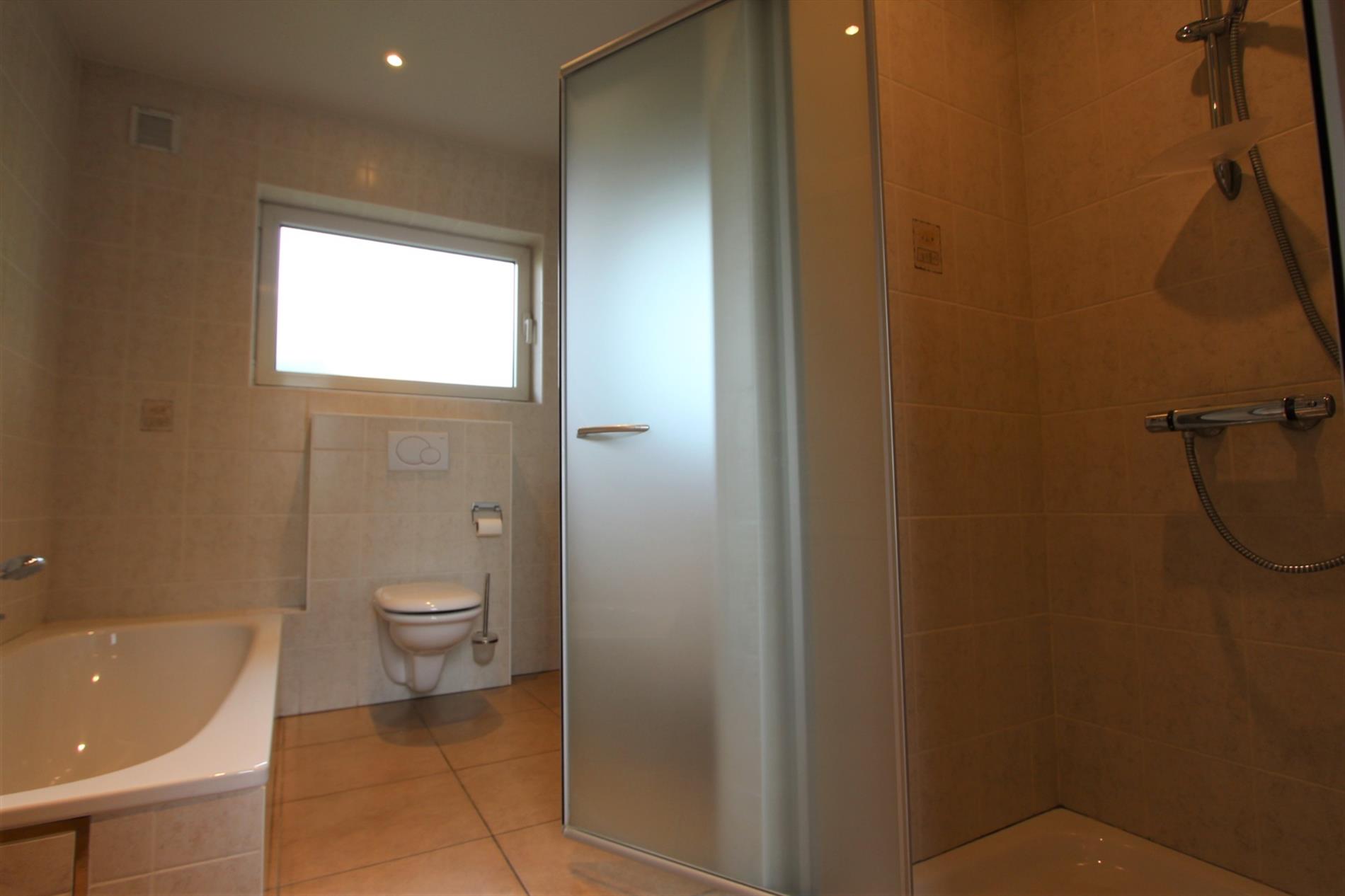 Verder vinden we op het gelijkvloers de koele berging, de wasplaats met aansluiting voor wasmachine en droogkast, een eerste ruime slaapkamers en de geïnstalleerde badkamer voorzien van bad, douche, lavabo met meubel en toilet.