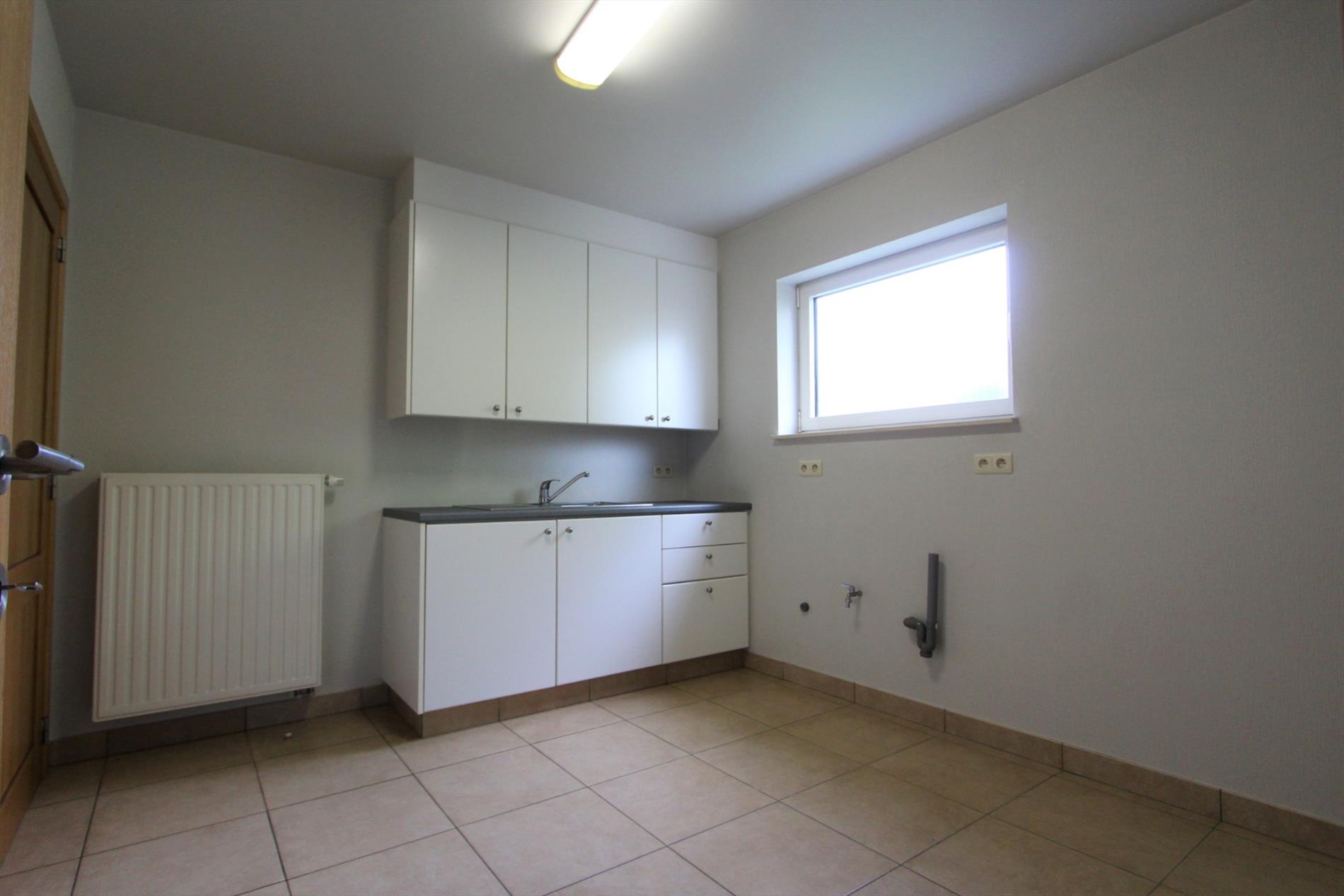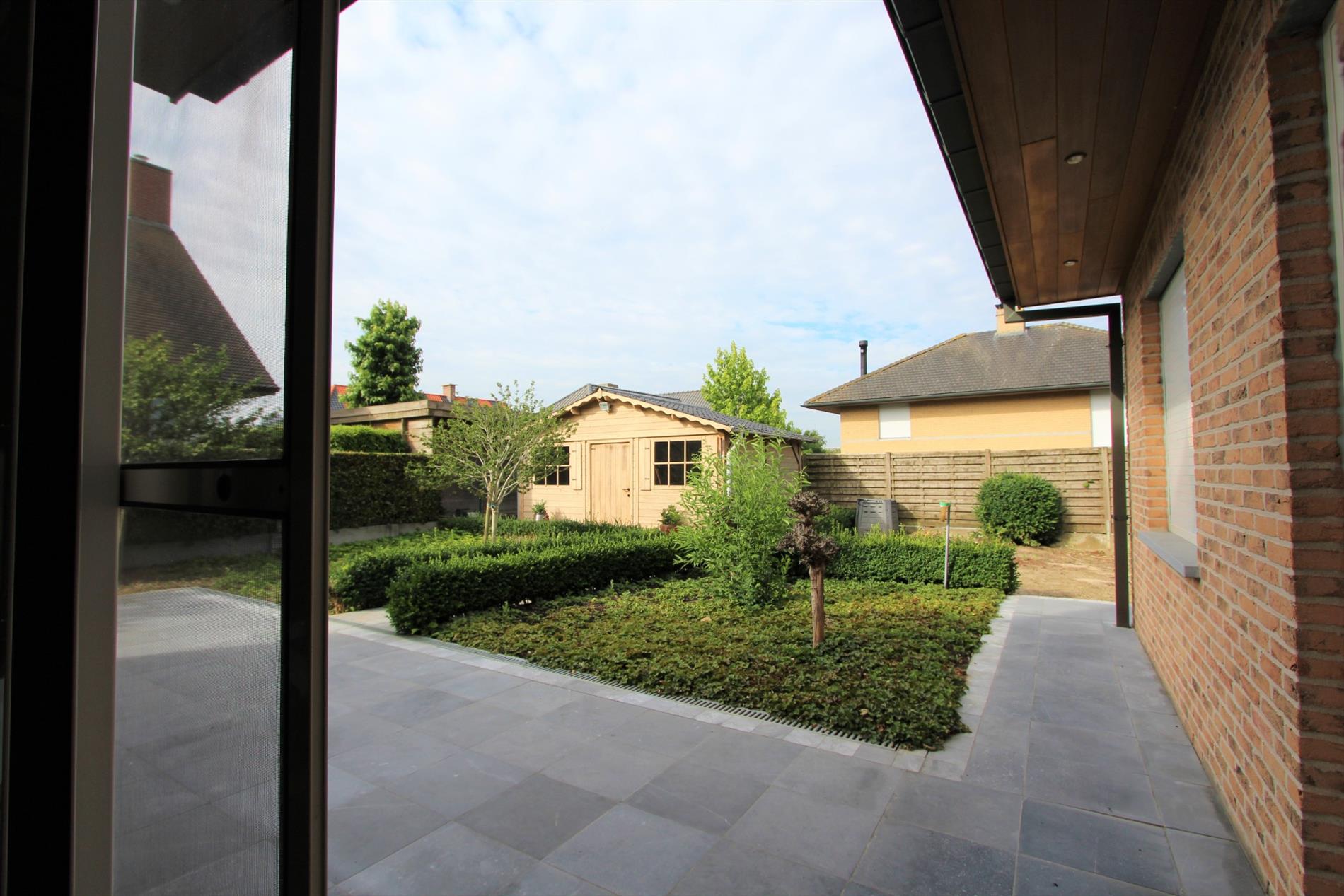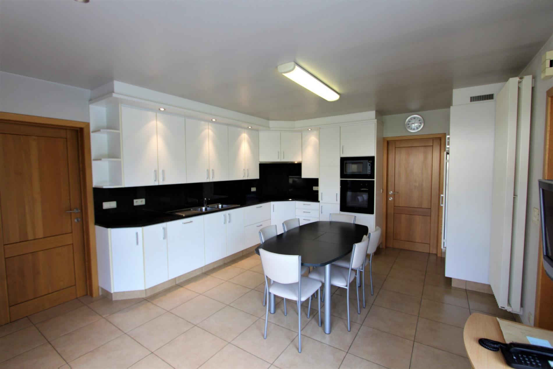 Aansluitend vinden we de geïnstalleerde keuken (voorzien van dampkap, keramische kookplaat, oven, microgolfoven, dubbele spoelbak en koelkast). Vanuit de keuken is er directe toegang tot de tuin en het aangelegde ruime terras.