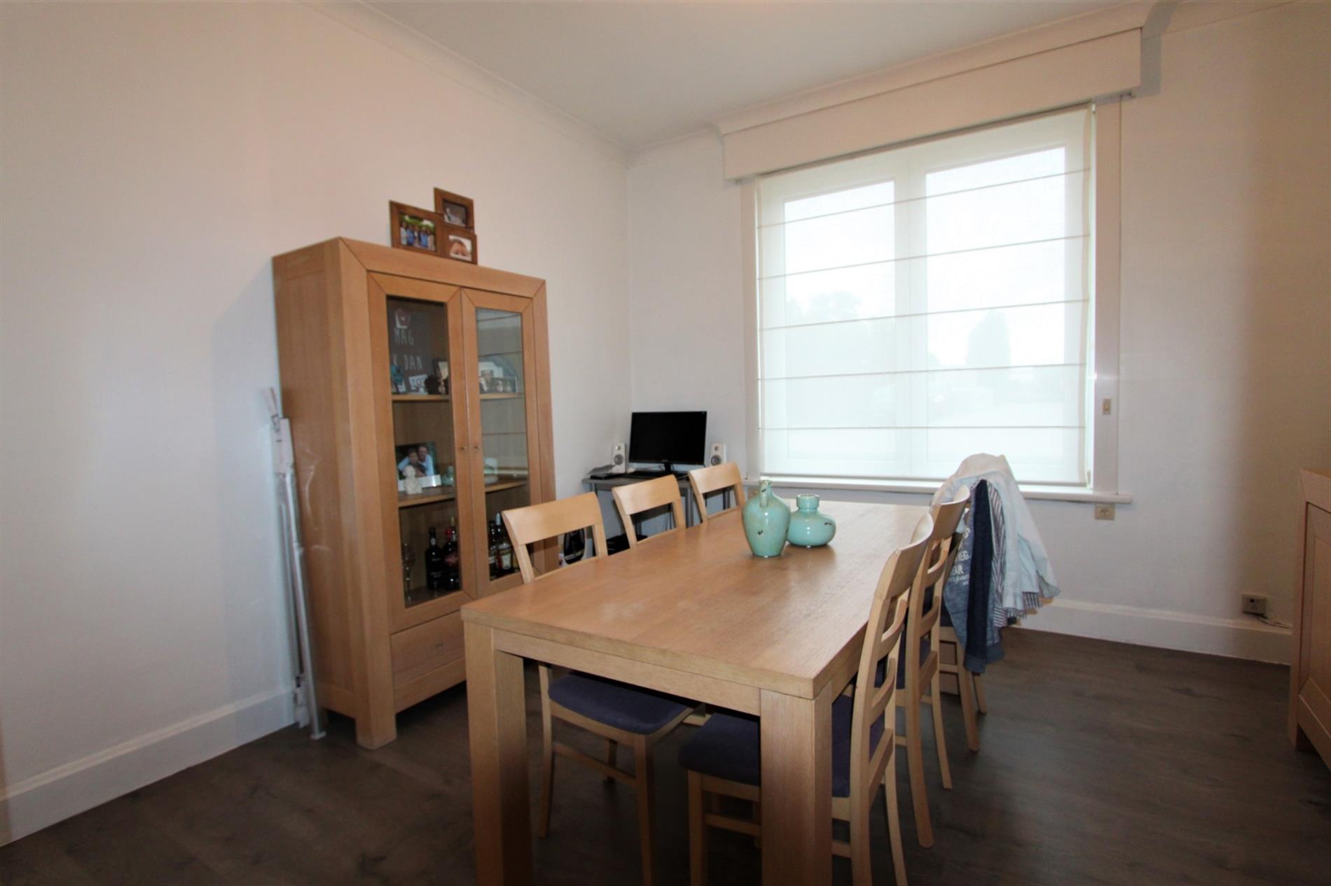 De woning omvat op het gelijkvloers een inkomhal, de leefruimte (zithoek en eethoek) met gaskachel, de gesloten keuken en de badkamer. De keuken is voorzien van een spoelbak, keramische kookplaat, dampkap en koelkast. Aansluitend aan de keuken is de badkamer. De badkamer is voorzien van wasmachine - droogkast én vaatwas aansluiting, een toilet, een lavabo en een ligbad met doucheaansluiting.