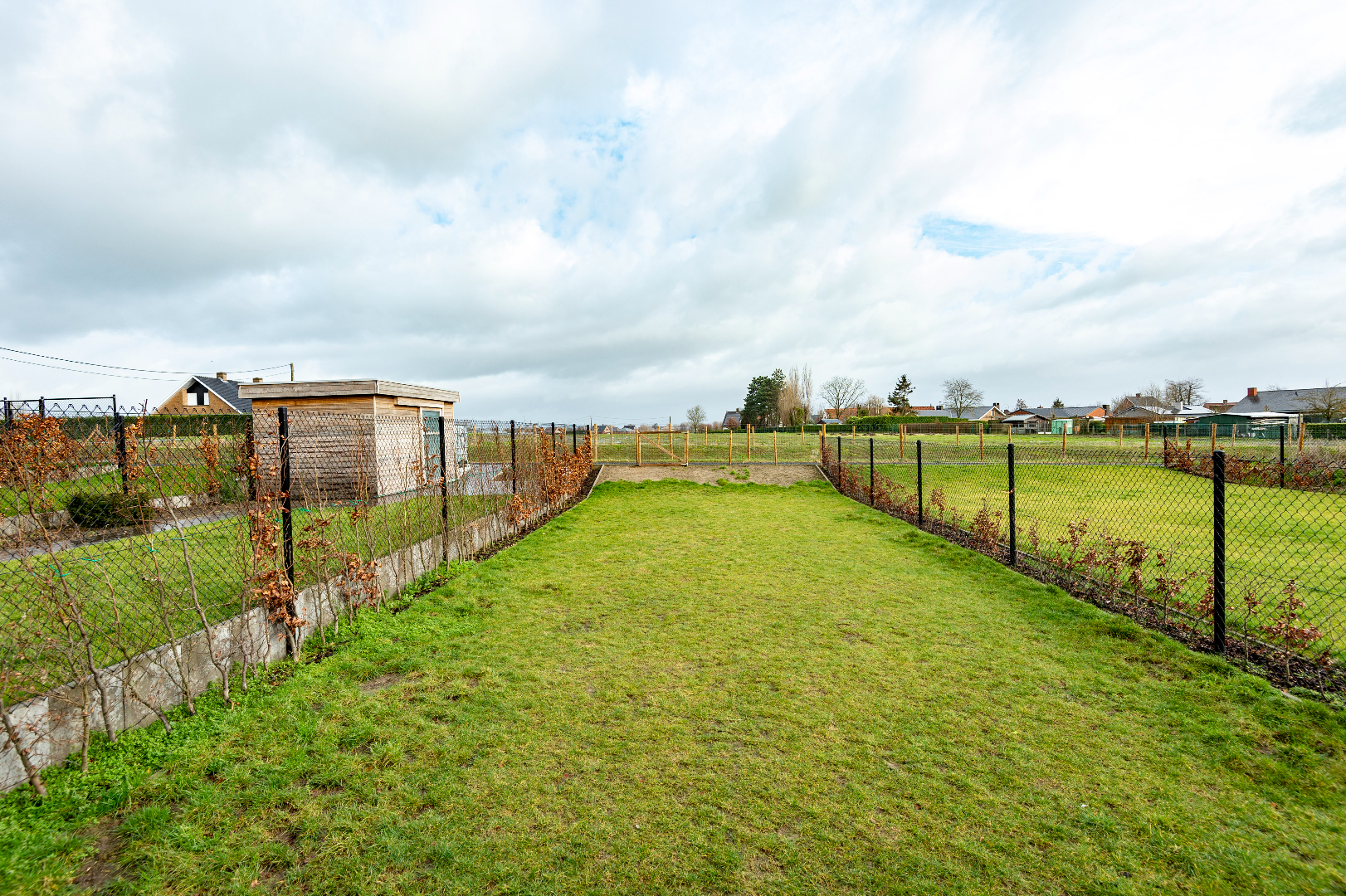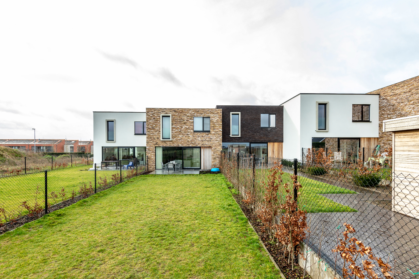 De oprit is voorzien van een grindmat met kiezel. De tuin is onderhoudsvriendelijk en vooraan voorzien van een worteldoek met schors. De achtertuin is volledig afgesloten en ingevolge kindvriendelijk en tevens voorzien van een terras. Extra is er nog een carport alsook een tuinberging (7,80 m²).