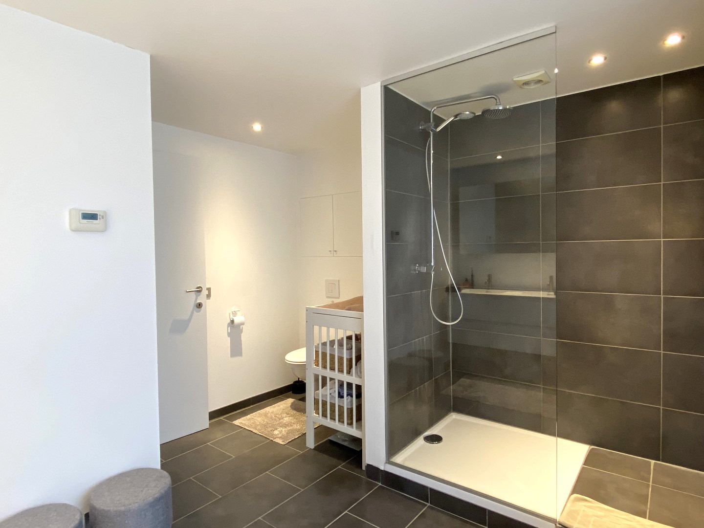 Via een vast trap komt u terecht op het verdiep. Het verdiep telt 3 slaapkamers met ingemaakte kasten. De badkamer is voorzien van meubel met dubbele lavabo, inloopdouche en toilet.