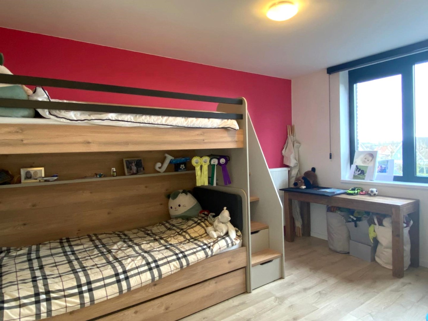 Via een vaste open trap komt u op de nachthall met ingemaakte kastenwand en apart toilet. Op dit verdiep zijn er 3 slaapkamers (13,50 m² | 12 m² | 9,50 m²), waarvan 2 slaapkamers volledig ingericht met kastenwand/bureau... . U beschikt ook over een ingerichte badkamer (7,25 m²). De badkamer is voorzien van een ligbad, regendouche, lavabo met meubel en handdoekdroger.