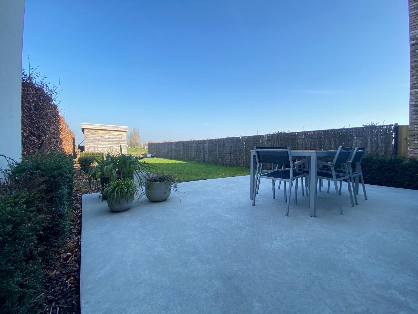 De oprit is voorzien van een grindmat met kiezel met plaats voor 3 wagens (waaronder 1 carport). De tuin is onderhoudsvriendelijk en U geniet ook van een landelijk verzicht.