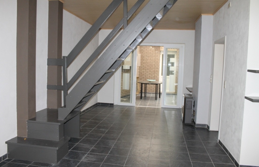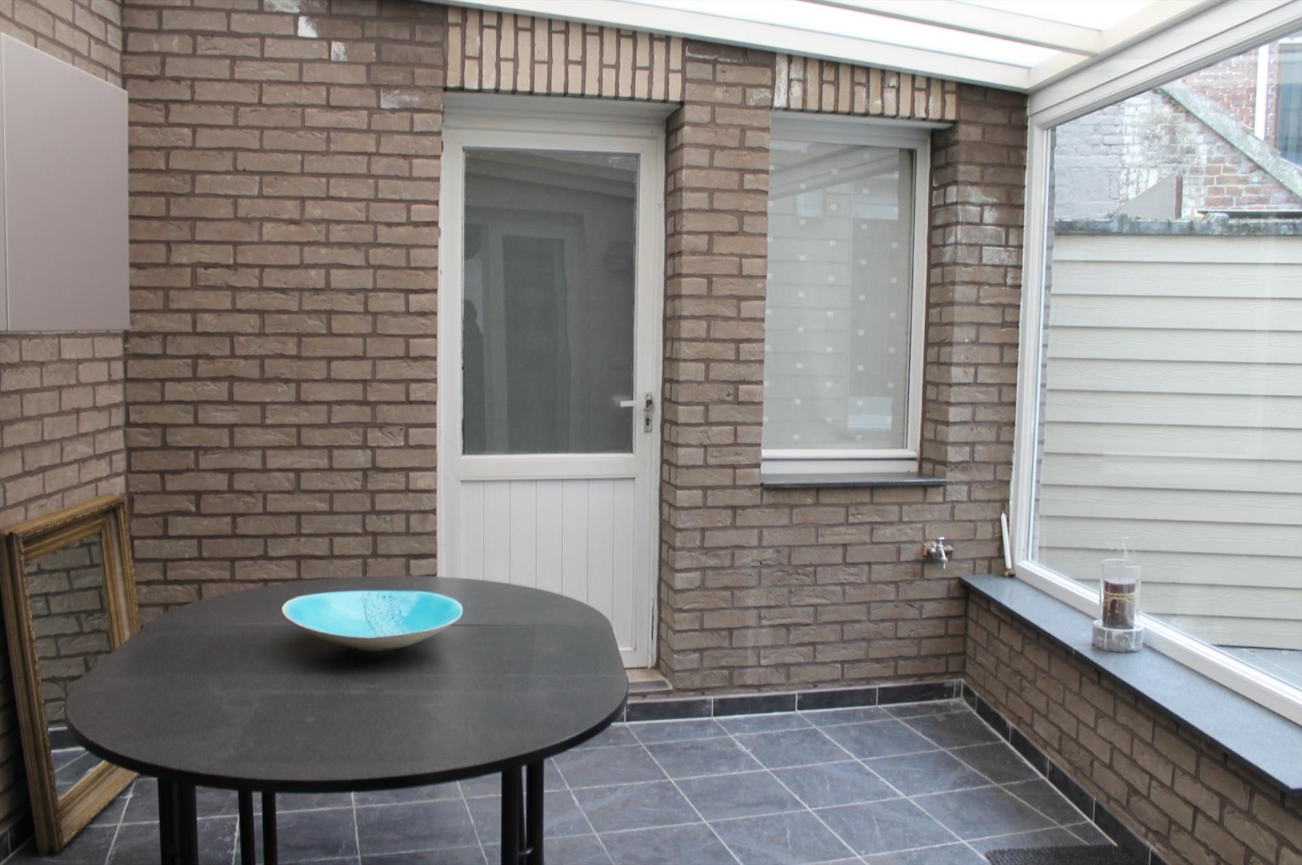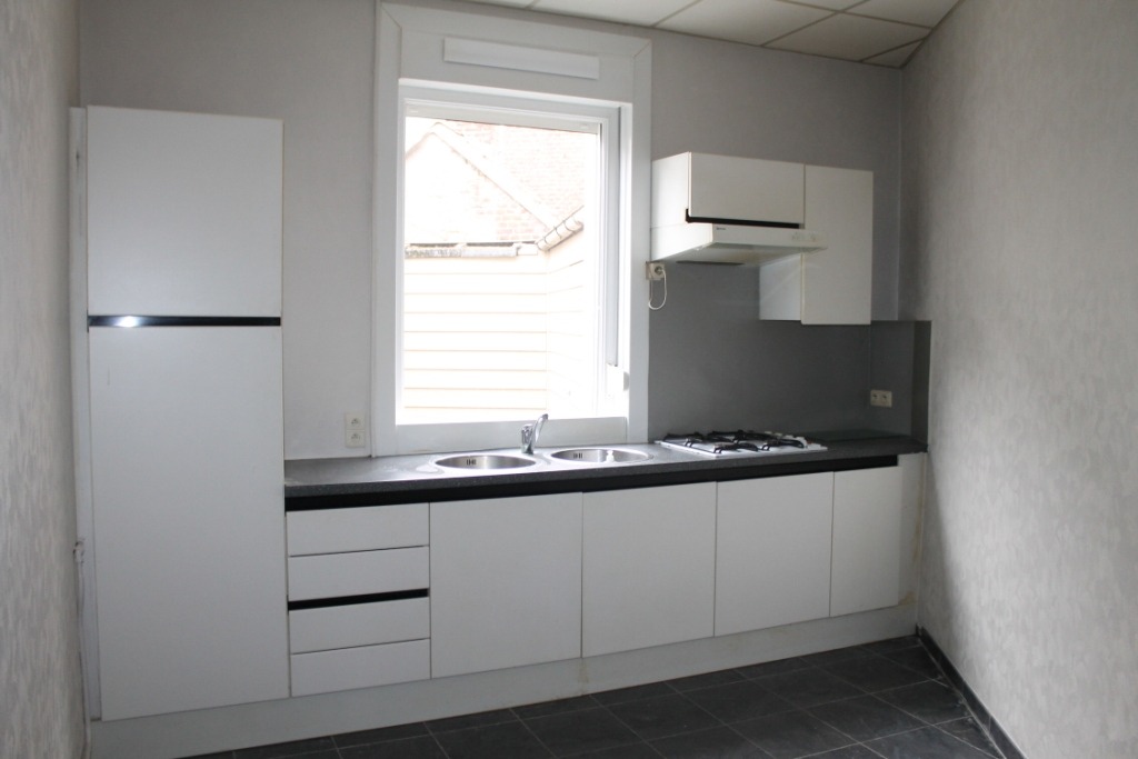 Deze centraal gelegen INSTAPKLARE rijwoning is voorzien van alle comfort en omvat een inkom, ruime leefruimte met veranda en aansluitend een gesloten keuken. Keuken is voorzien van een spoelbak, gasfornuis en dampkap.