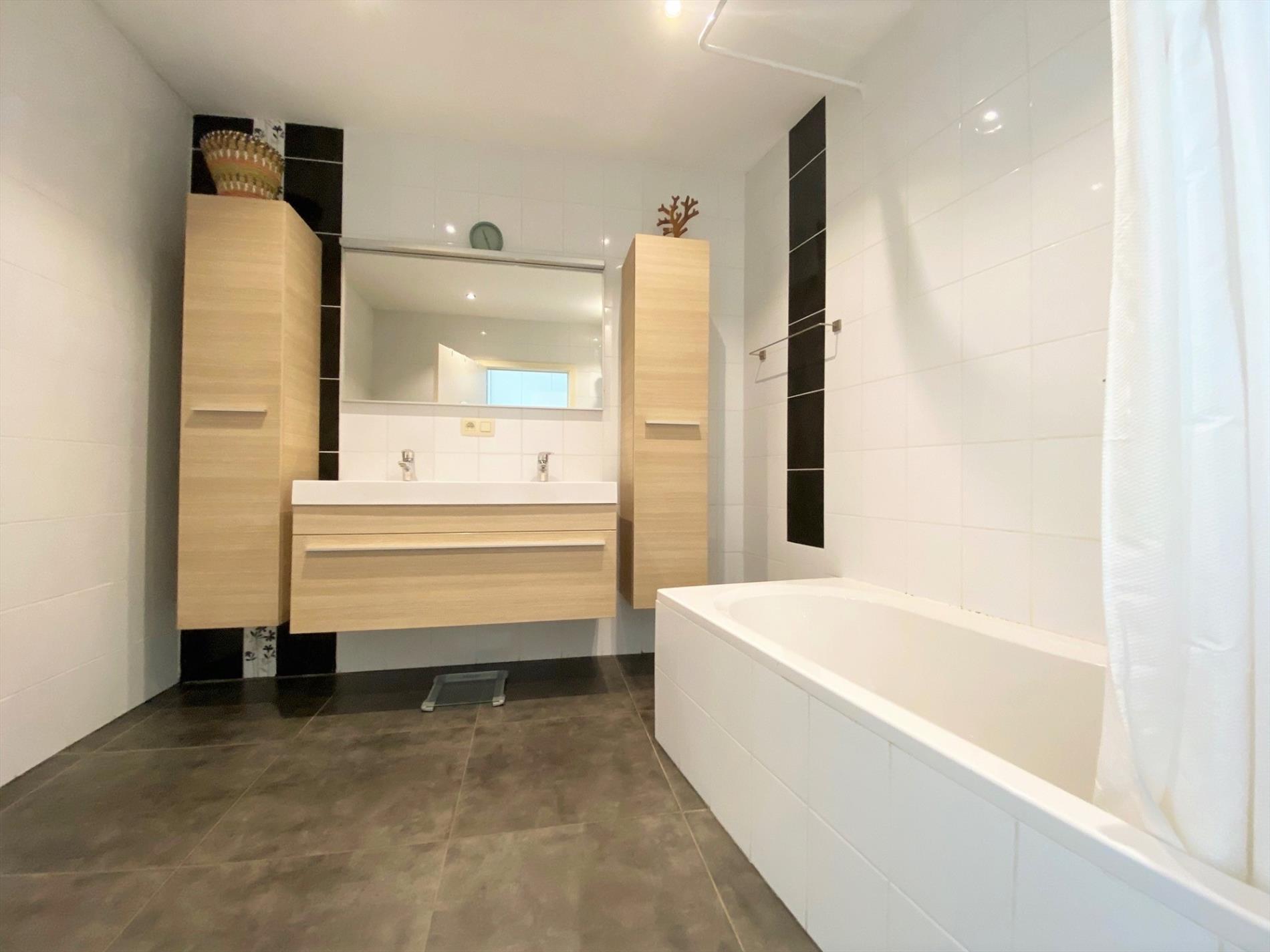 Op het gelijkvloers bevindt zich tevens nog een badkamer (toilet - ligbad en lavabo) en apart toilet.