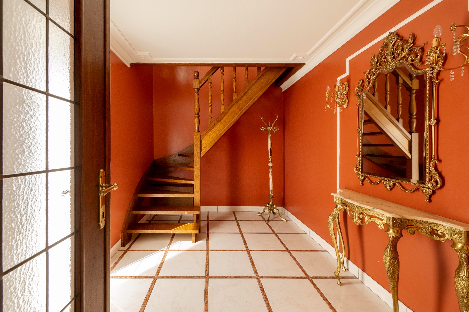 U komt binnen via de inkomhall met directe trap naar de leefruimte op het eerste verdiep.