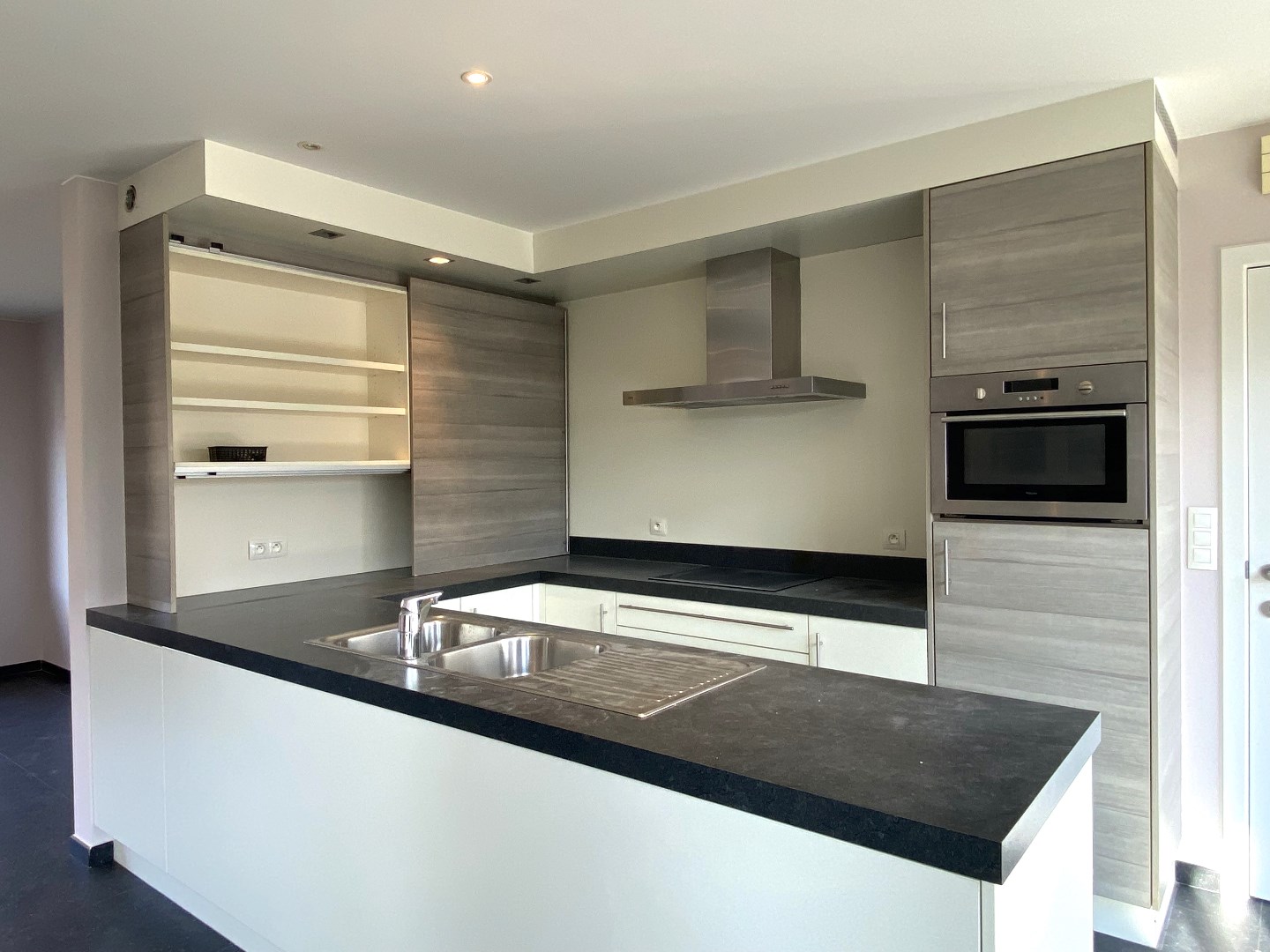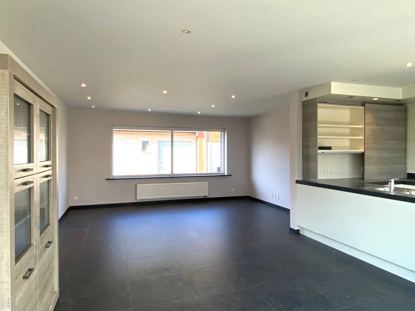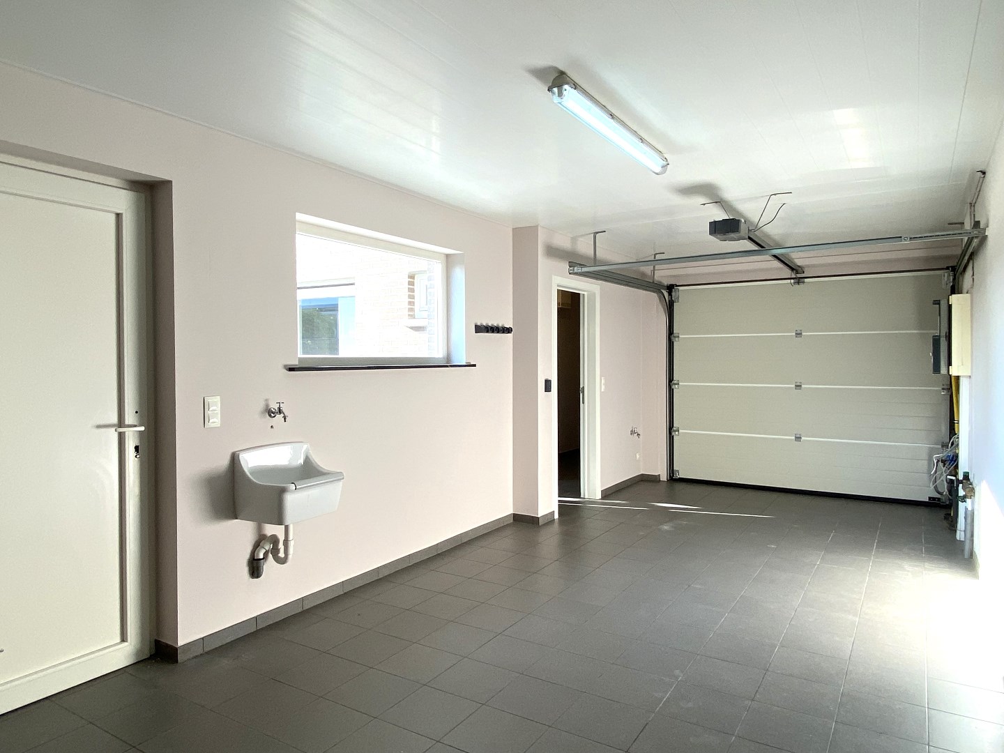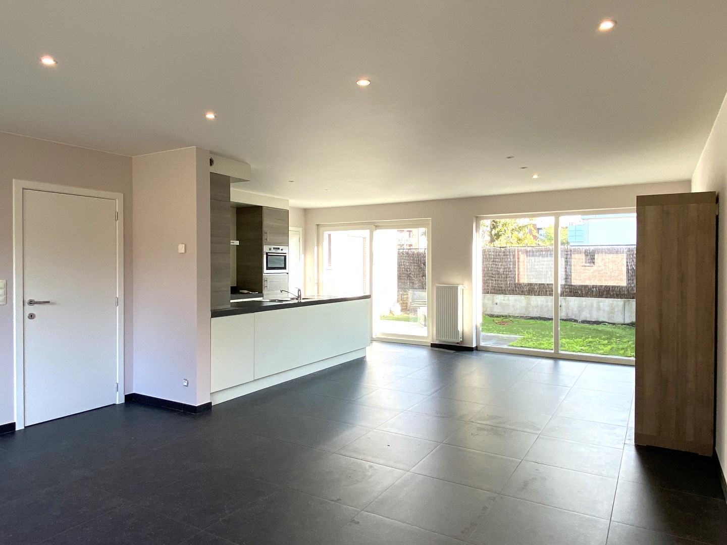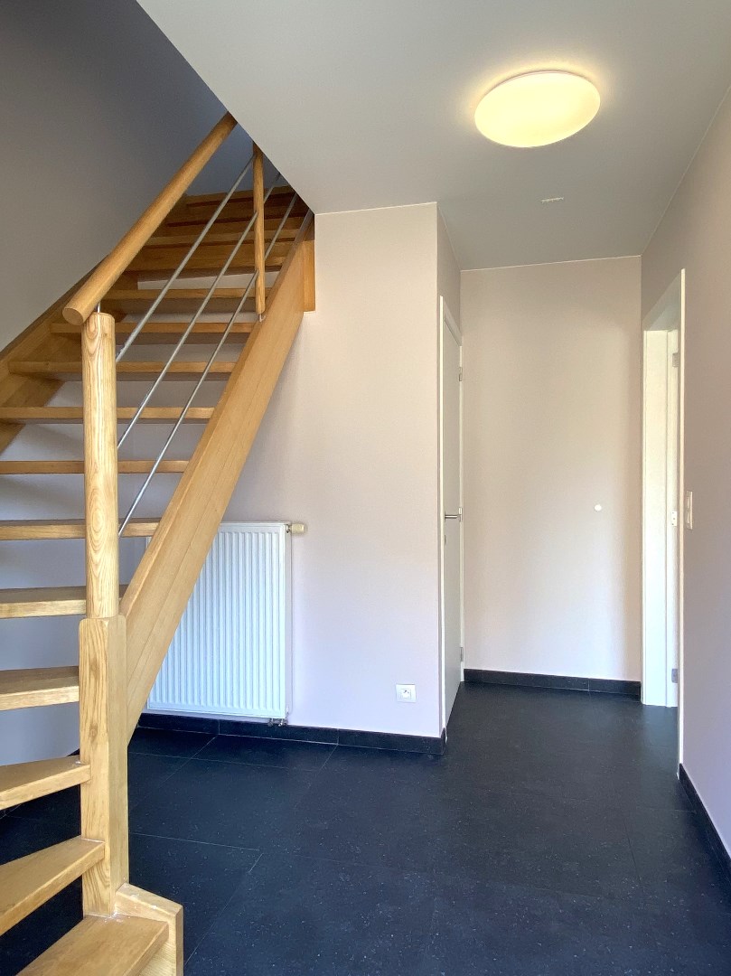 U komt binnen via de inkomhal met apart gastentoilet. Verder is er de lichtrijke leefruimte met aansluitend de open ingerichte keuken (kookplaat | dampkap | spoelbak | frigo | vaatwasser | combi-oven) en praktische berging met directe toegang tot de tuin. Het gelijkvloers omvat ook nog een inpandige garage met aansluiting voor wasmachine en droogkast alsook hier toegang tot de tuin.