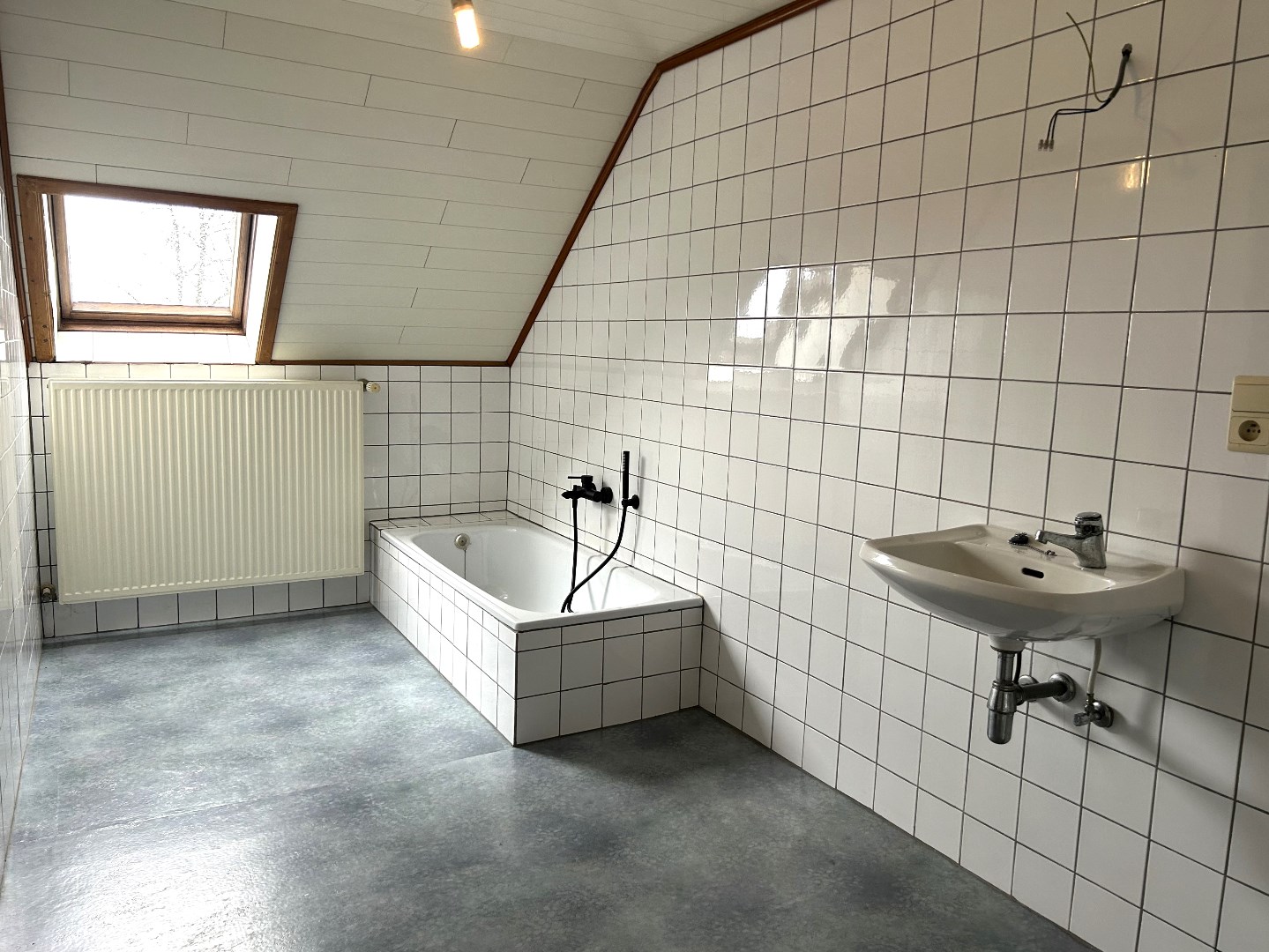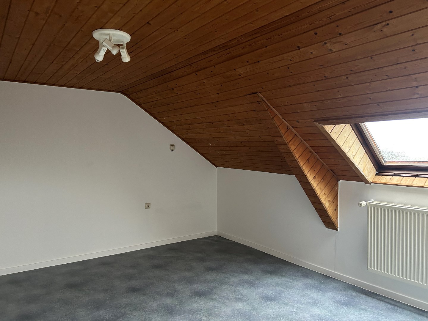 Via de vaste trap komt u terecht op het verdiep. Her verdiep omvat 2 ruime slaapkamers en badkamer met ligbad en toilet. Verder zijn er tal van zolderruimtes.