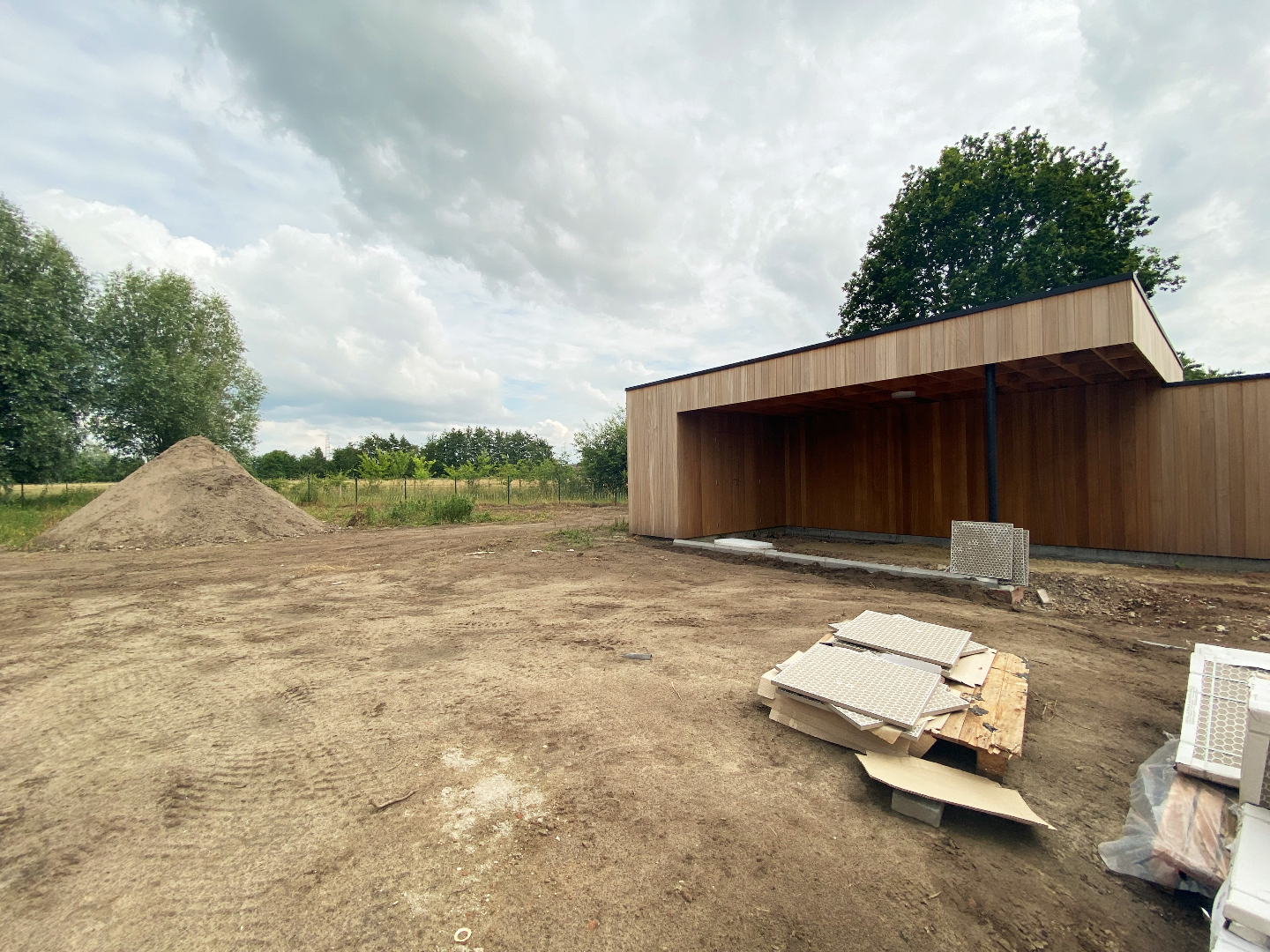 Deze woning is aan de buitenzijde voorzien van een oprit met CARPORT en fietsenberging. De voortuin wordt voorzien van beplanting. Het grasperk achteraan wordt volledig afgesloten. Tevens omvat de buitenzijde een terras.