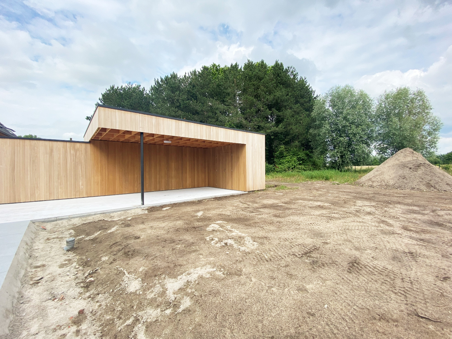 Deze woning is aan de buitenzijde voorzien van een oprit met CARPORT en fietsenberging. De voortuin wordt voorzien van beplanting. Het grasperk achteraan wordt volledig afgesloten. Tevens omvat de buitenzijde een terras.