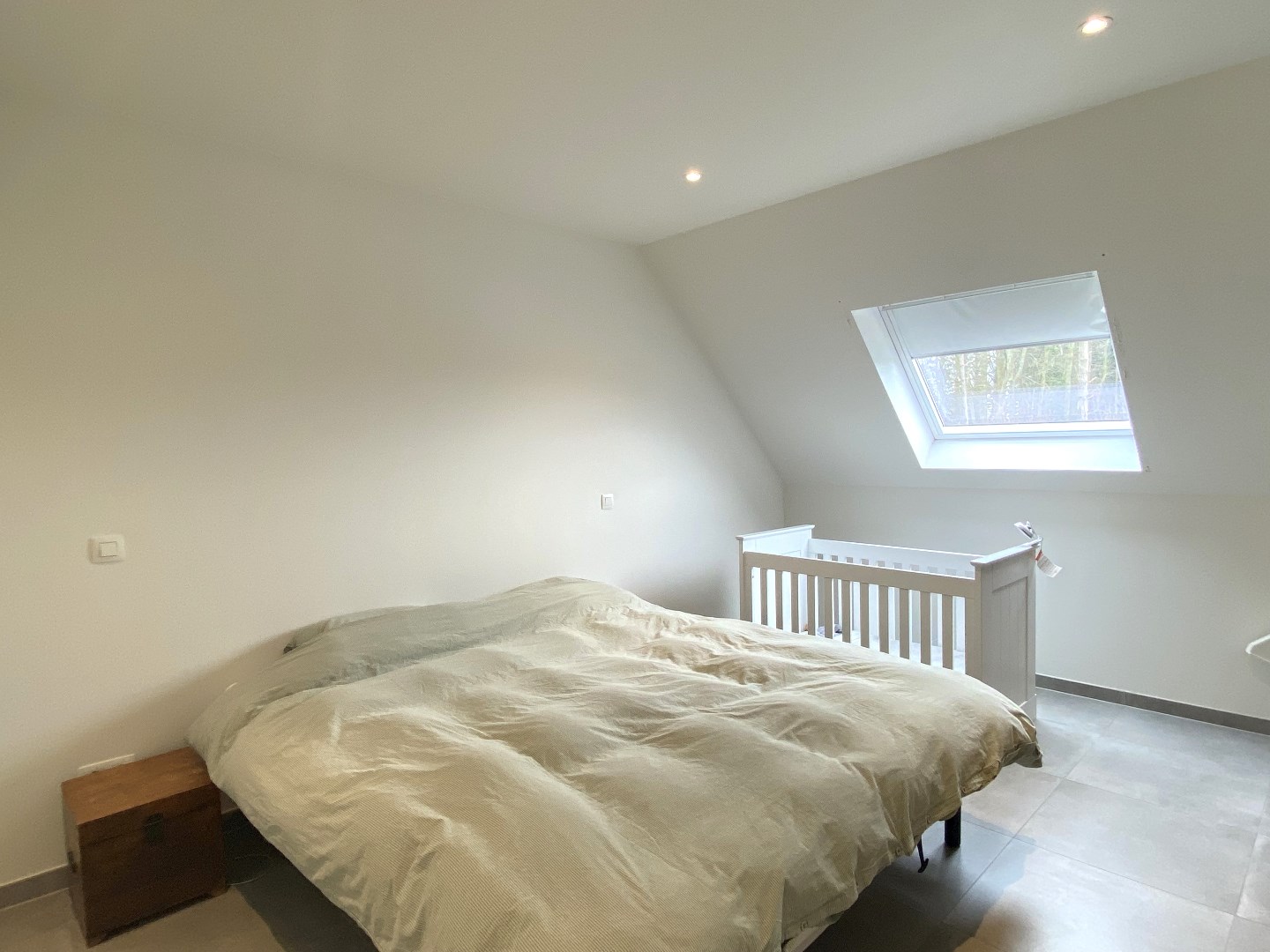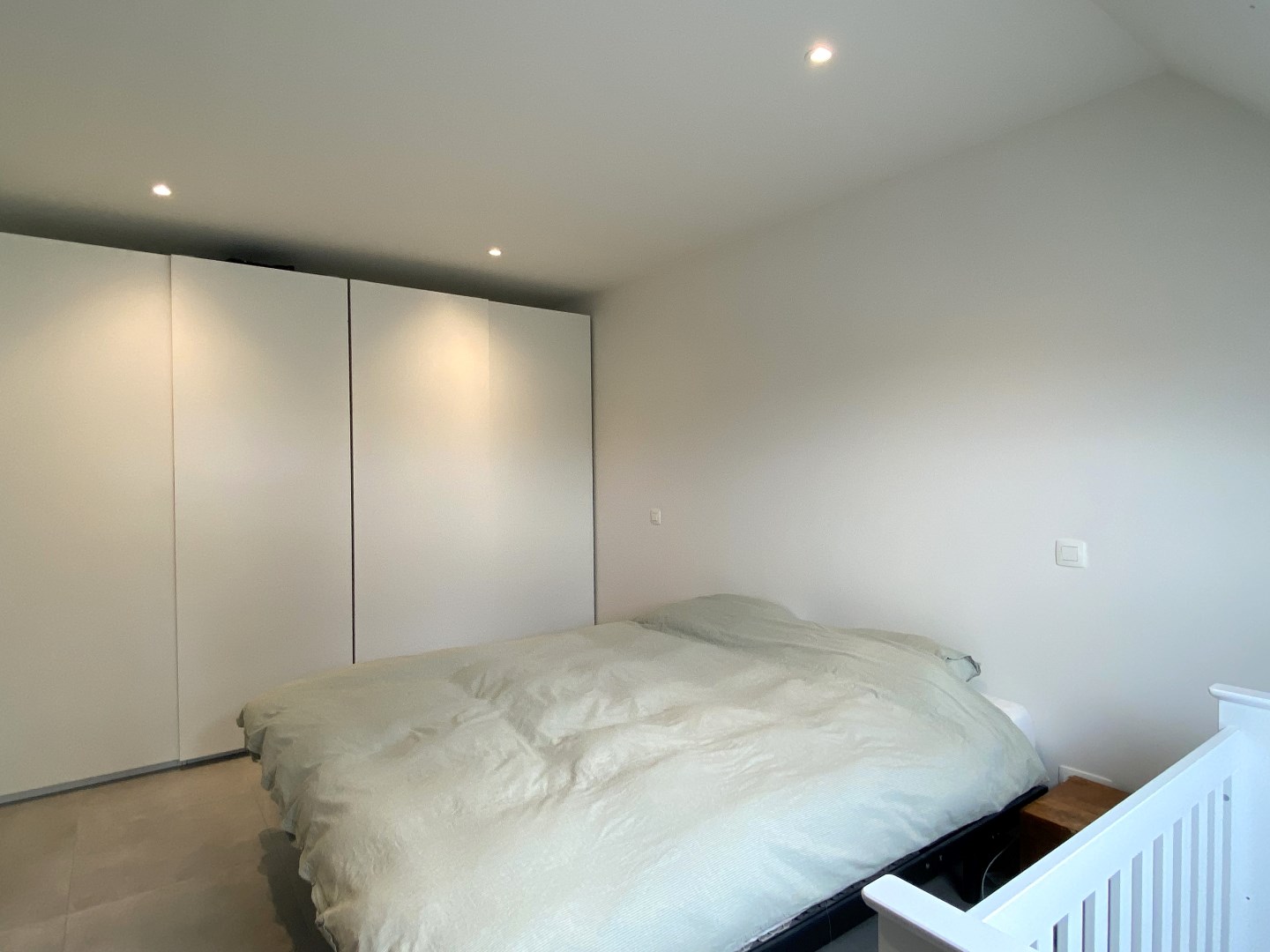 Het verdiep telt een nachthall met apart toilet, 3 slaapkamers en de badkamer met lavabomeubel en inloopdouche. Via een tweede vaste trap komt U terecht op het tweede verdiep. Dit verdiep omvat een 4de slaapkamer en een zolderruimte/berging/technische ruimte.
